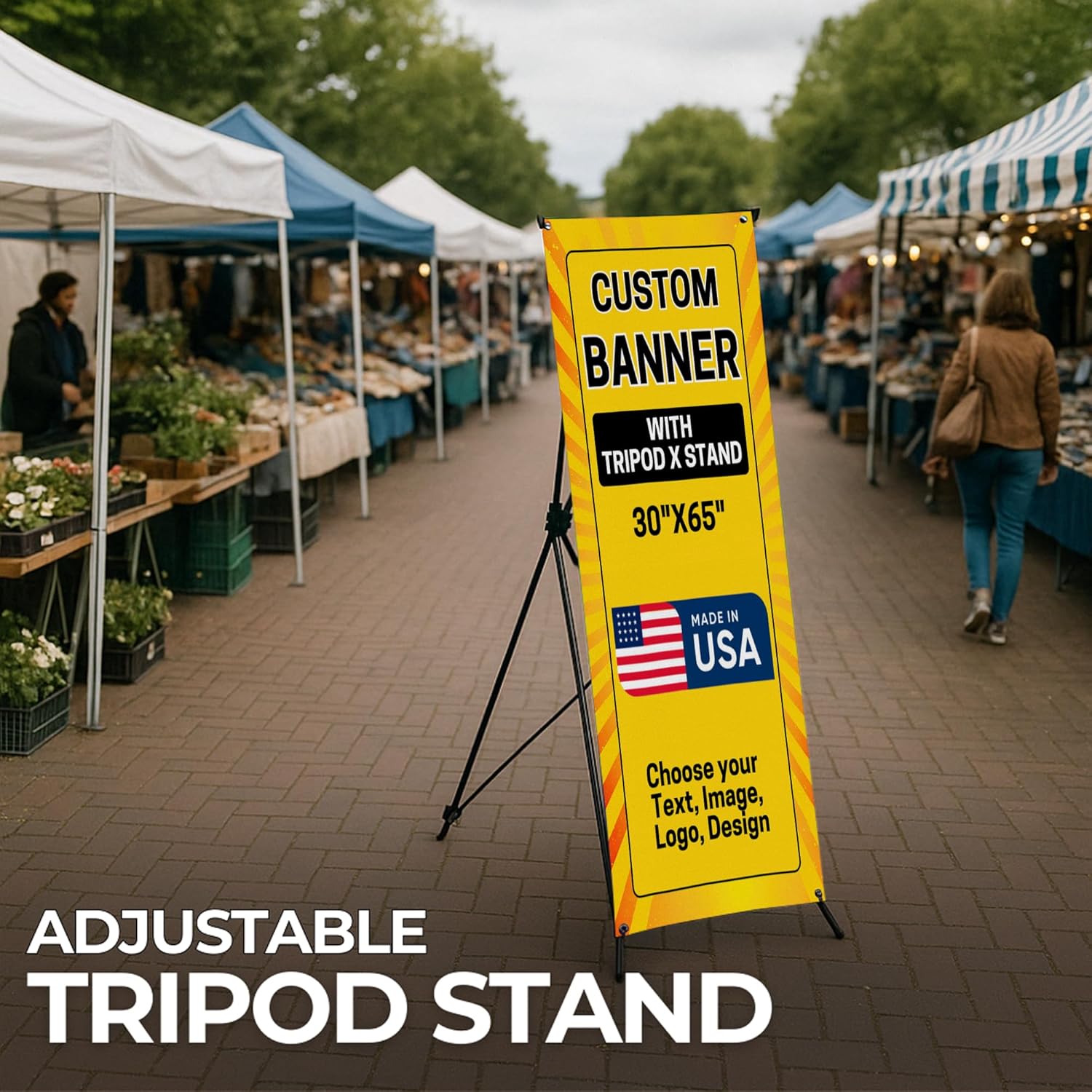 Custom Banner With X Stand By Dreamcontroller(30" X 65") | Personalized X Banner Stand For Advertising, Stores, Tradeshow, Restaurant, Event, Birthday & Party | Made In Usa | Fast Delivery | Hd Print