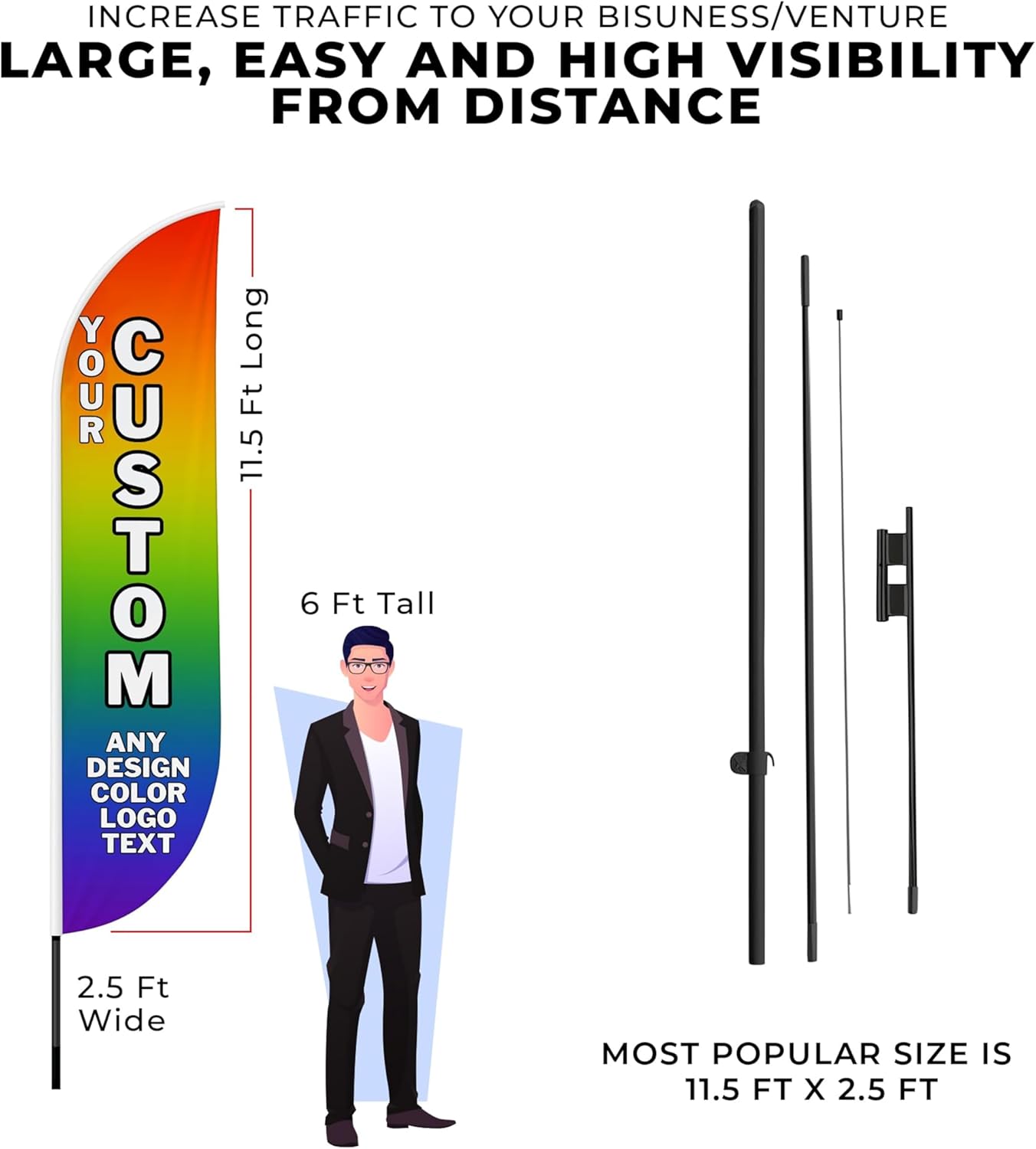 Custom Feather Flag(11.5Feetx2.5Feet) By Dreamcontroller For Business Outside With Optional Add-On Pole(15Feet) and Groundspike | Swooper Flag Banner | Made In Usa | Hd Print