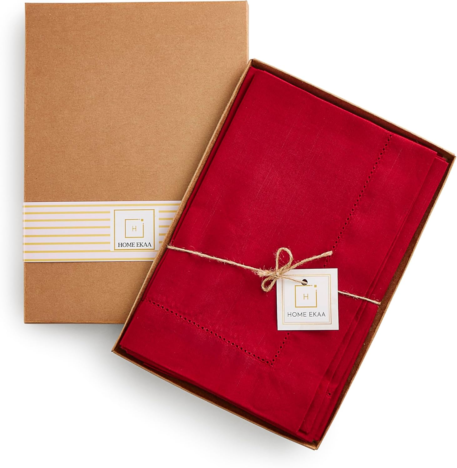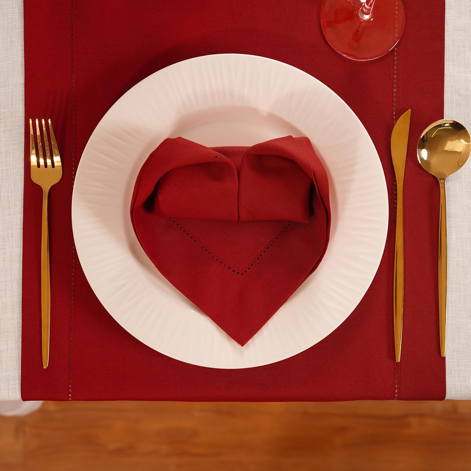Cotton Linen Dinner Napkins Set of 4 – Hemstitch Red Cloth Dinner Napkins 20x20 Inch – Washable Fabric for Dining, Fall, Halloween, Spring, Summer, Wedding, Everyday Décor – Serena