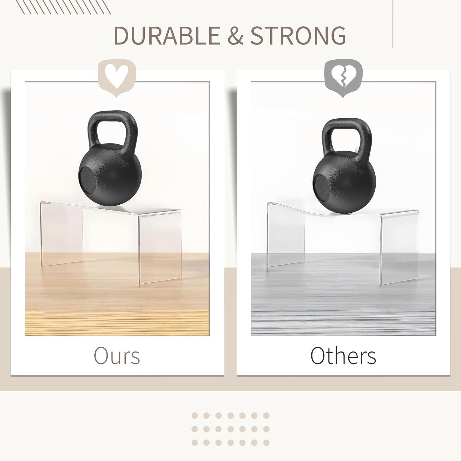 • STURDY MATERIAL&SIMPLE DESIGN: Made of 4mm high quality acrylic material, the acrylic risers display stands are more sturdy and durable and designed for a long service life.With the clear appearance that will add a sophisticated and professional touch to any display.
