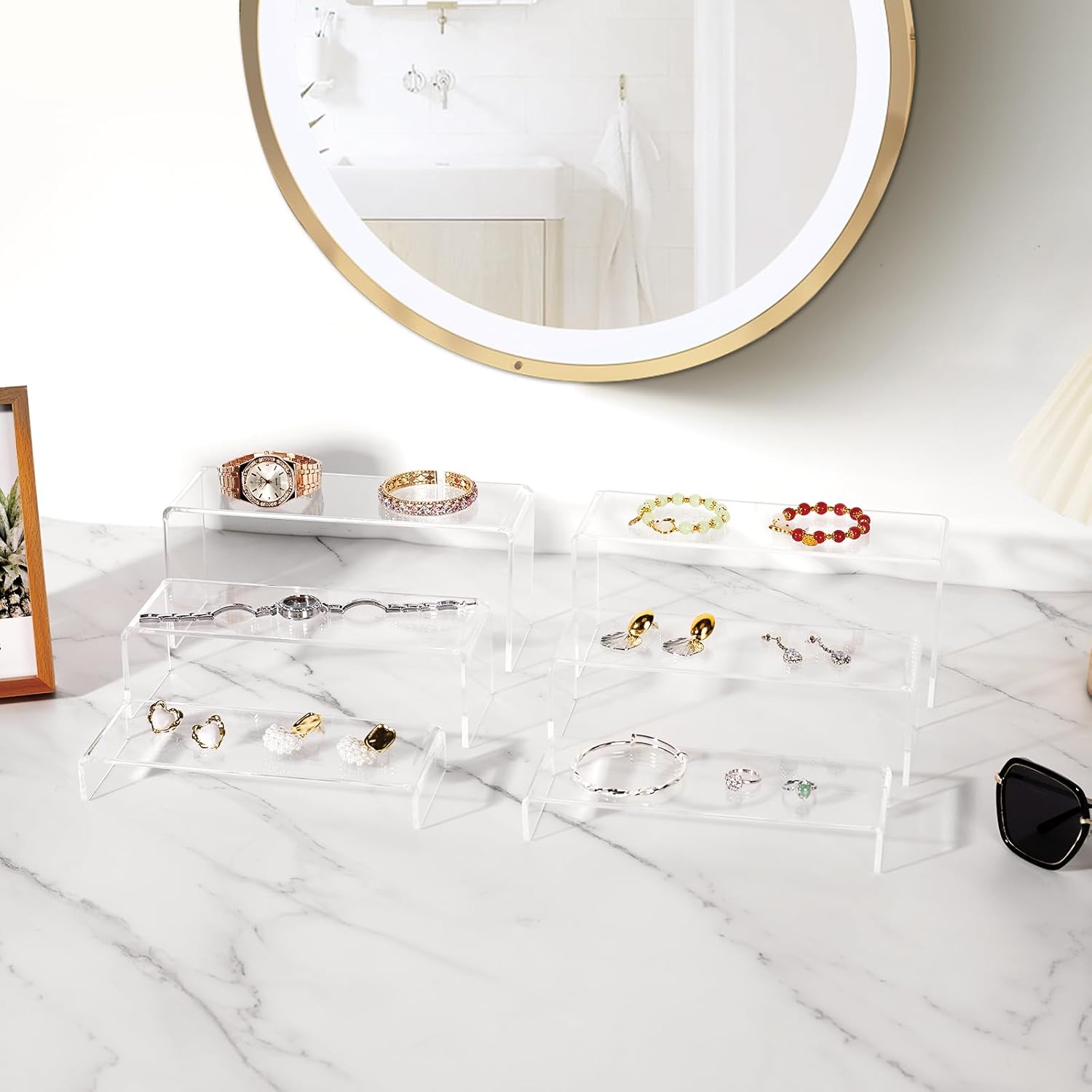 • VERSATILE USES: The clear display risers can meet your different needs for displaying and organizing various items such as desserts, jewelry, shoes, cosmetics, perfume,potted plants,collectibles, and more and suitable for living room, bedroom dresser, kitchen, display cabinet. Besides home use, our acrylic display stand can be used in other places, especially for birthday parties, weddings, art exhibitions, buffets and stores.