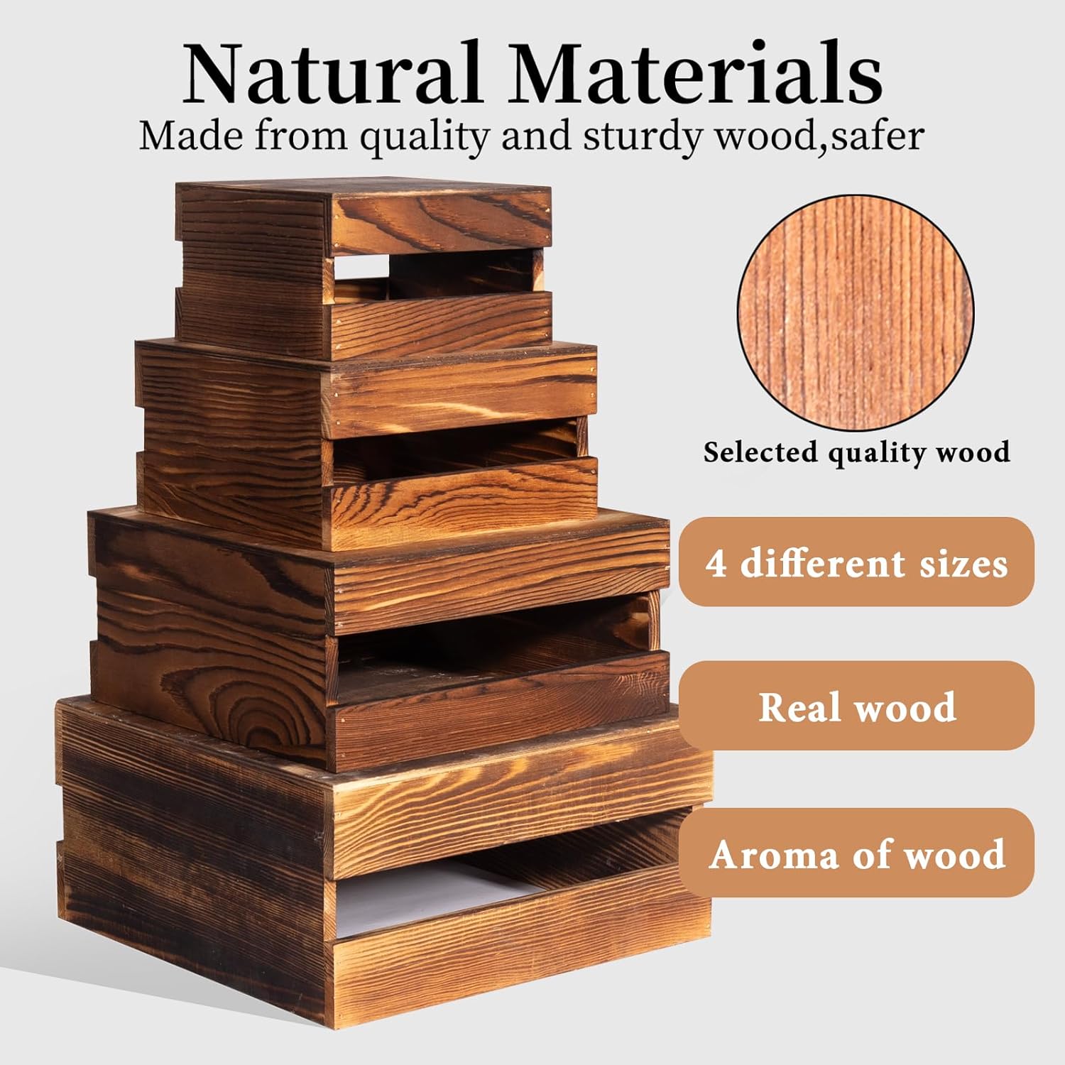 • Versatile Sizes for Layered Elegance: Our wooden stackable display boxes are carefully sized for multi-layer display, Large: 8.9x7.9x5.1 inches; Medium: 8.0x7.0x4.7 inches; Small: 7.2x6.2x4.3 inches; Extra Small: 6.4x5.4x3.9 inches, create stunning visual tiers and levels of display space that captivate every guest