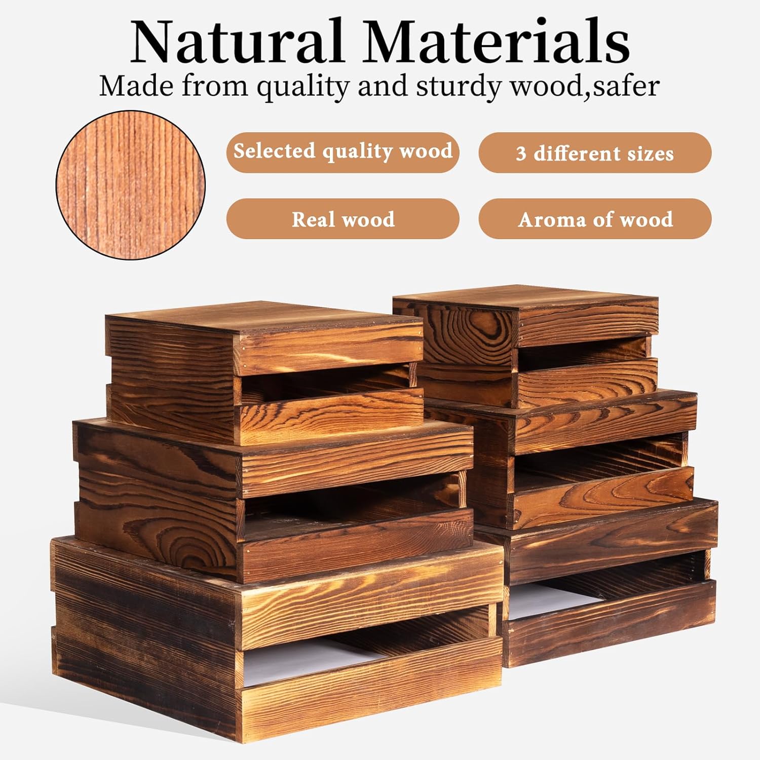 6 Pcs Buffet Risers with Mini Signs, Rustic Wood Cake Stands, Food Risers for Buffet Table, Dessert Display Stand, Wood Crates, Rustic Cake Stand for Party, Wedding, Birthday, Baby Shower, 3 Sizes