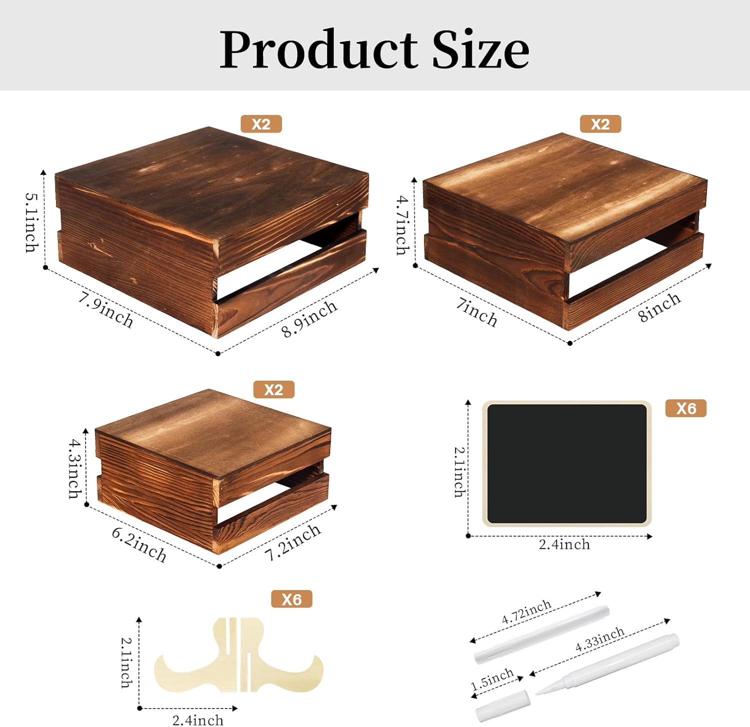 • Your Party's Sweet Companion: You will receive a set of 6 wooden cake stand risers (available in 3 sizes), 6 wooden signs and 2 pens, enough quantity and different sizes to meet the needs of different sizes of cakes, snacks and desserts for display. The wooden signs can be used to write down hints for ease of use while adding elegance to your dessert table.These wooden stackable display boxes will not take much displaying space