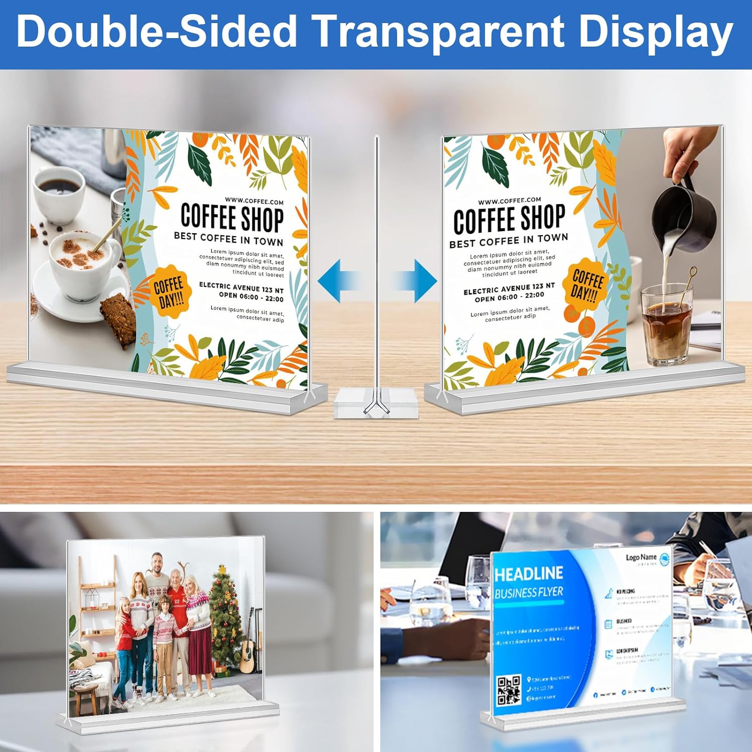 • 【Double Sided Sign Stand】This 6Pack acrylic sign holder 6x4 is designed with a vertical double sided stand. Typically, people prefer this double-sided holder rather than slant-back ones. Because these double-sided holders allow you to display on both sides, but slant back ones, which only allow you to display on one side
