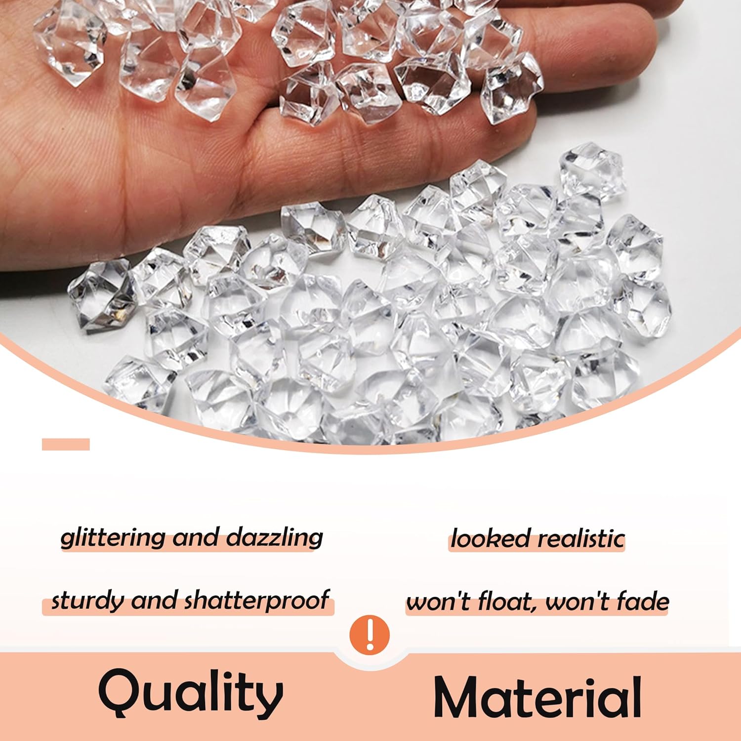• Package Include: 1000pcs crystal clear artificial diamonds 0.55 inch for each. The fake ice cubes with plenty of quantity and the shiny, chic look crystal rocks are a great choice for all kinds of DIY decorations.