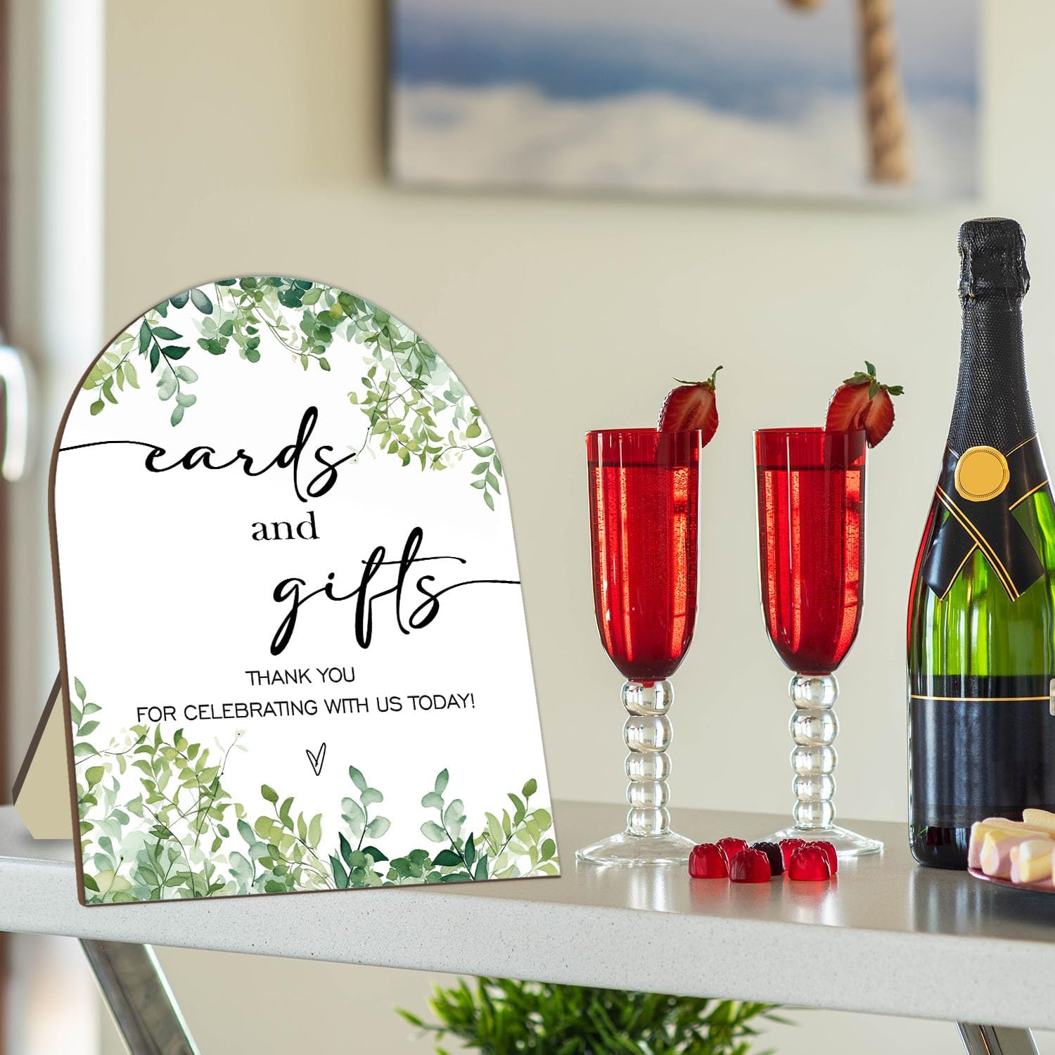 Cards and Gift Sign, Thank You for Your Gift and Well Wishes Sign, Eucalyptus Leaf Decoration Bridal Shower with Stand, Baby Shower Favors, Party Decor Supplies 9 * 11IN