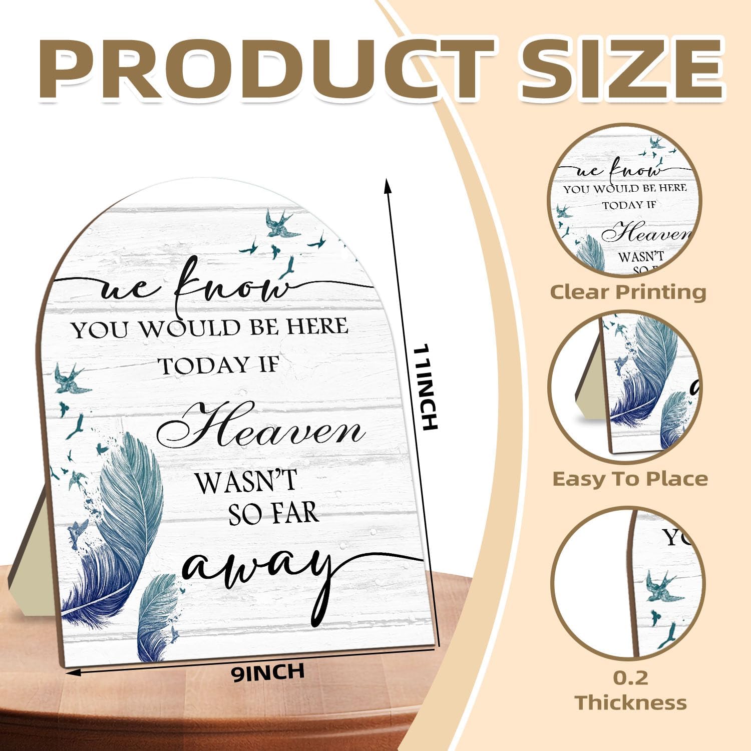 Memorial Table Sign for Wedding, We Know You Would Be Here Today Wooden Sign with Stand, Feather Decoration Wedding Loving Memory Sign for Ceremony and Reception 9 * 11IN