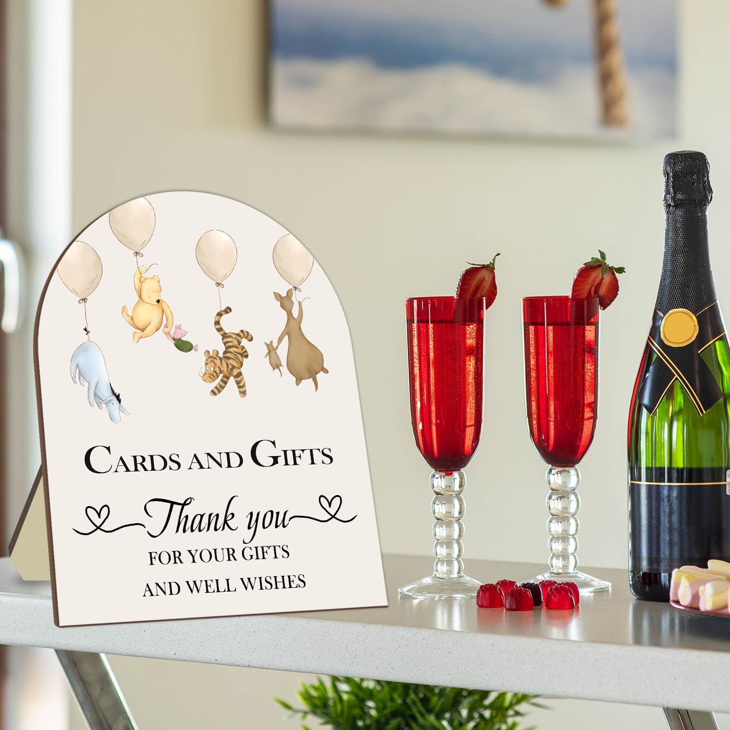 Winnie Cards and Gift Sign, Classic Pooh Thank You Wooden Sign, Classic Winnie Bridal Shower Baby Shower Favors, Thank You for Your Gift and Well Wishes Sign with Stand 9 * 11IN