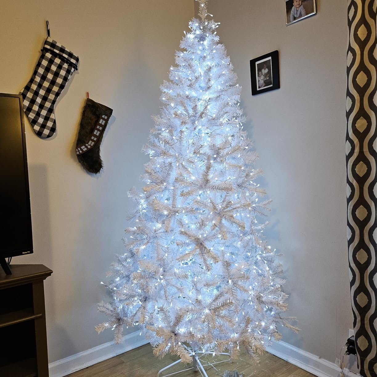 • Perfect Decorations for Christmas: 165ft 500 LED string lights will take your christmas holiday to a new level. The 9.8ft long lead wire, allowing to plug in the light far away from tree. It is well made and tangle free. Clear cord is thin, it would blend in better with a christmas tree. Perfect for 7ft Christmas Tree.
