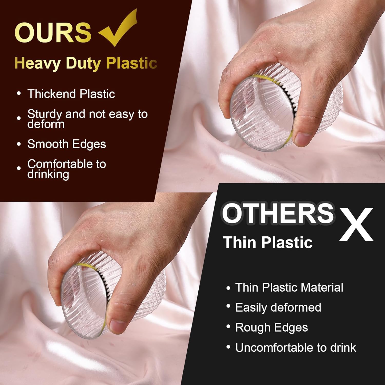 • 【Unbreakable & Reusable】The unbreakable plastic wine glasses disposable are made of heavy duty plastic, it is unbreakable, shatterproof, disposable and reusable. You don't have to worry about the plastic whiskey glasses for parties breaking anymore. After use, NOT dishwasher-safe!