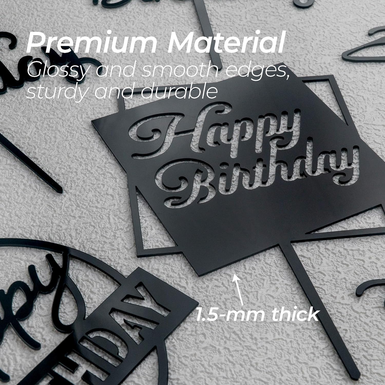 6 Pcs Black Happy Birthday Cake Toppers Set, Acrylic Cake Decoration for Birthday Party