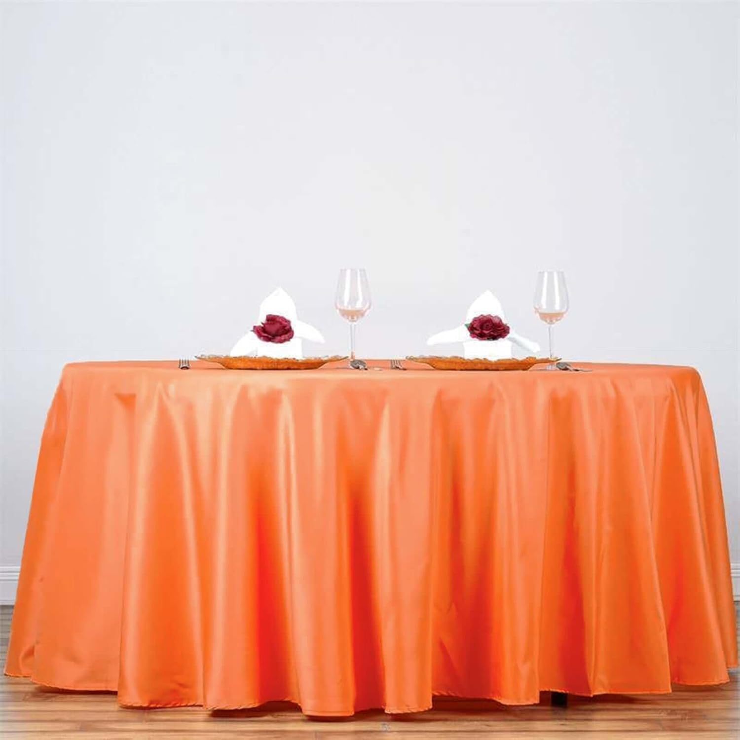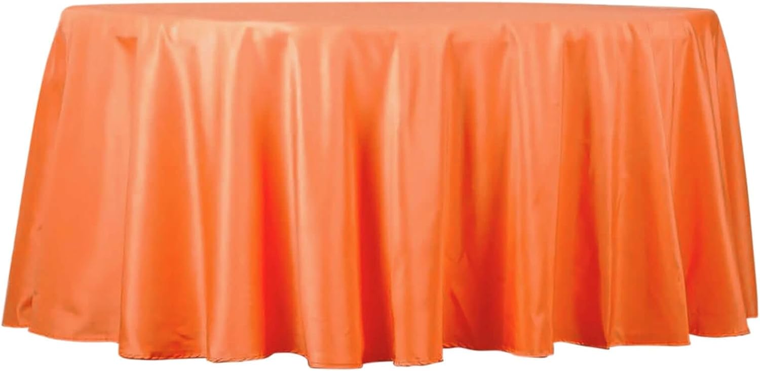 Efavormart Round Tablecloth, 132 Inch Stain & Wrinkle Resistant Washable Table Cloth, Decorative Polyester Fabric Table Cover for Banquet, Wedding, Dining- Orange