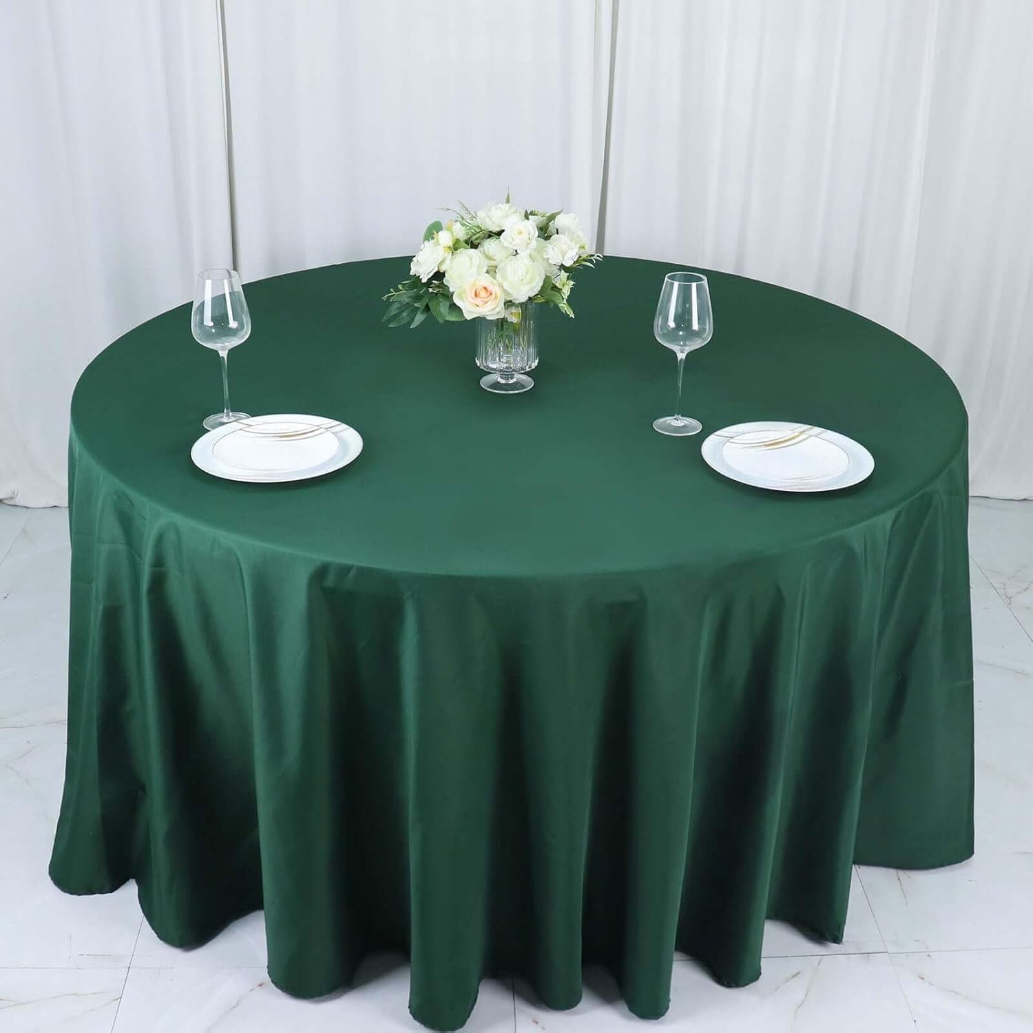 Efavormart Round Tablecloth, 132 Inch Stain & Wrinkle Resistant Washable Table Cloth, Decorative Polyester Fabric Table Cover for Banquet, Wedding, Dining- Hunter Green