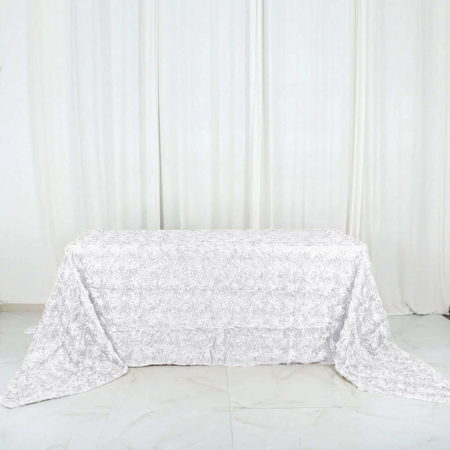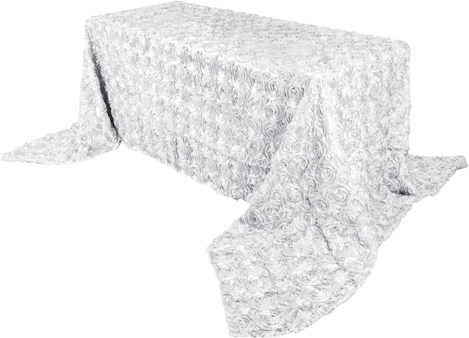 Efavormart 90"x156" Wholesale Rectangle Table Cover White Grandiose Rosette 3D Satin Tablecloth for Wedding Party Event Decoration