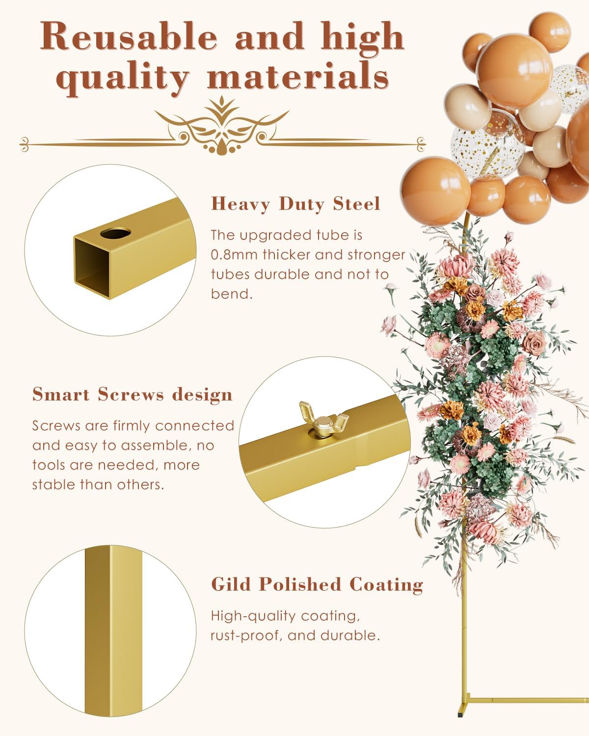 • Easy to Assemble: Our metal wedding arch stands, including a wedding arch frame suitable for balloon arch backdrops, are made of sturdy and lightweight square steel pipes with a bright gold color. With a higher bearing capacity and easy assembly, the arch frames can be quickly put together with screws in minutes. The metal arch backdrop stands are designed for easy disassembly by a single person, making setup convenient and hassle-free for any event.
