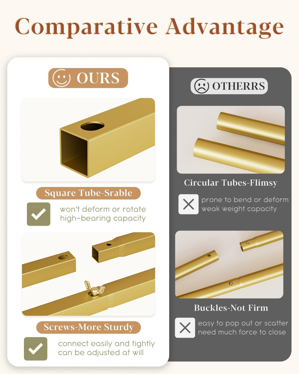• Portable Disassemble: Lightweight yet sturdy, the gold-polished metal backdrop stands are portable and convenient for indoor and outdoor use. With no rust or corrosion, the backdrop arch stands are easy to set up and disassemble, allowing for quick assembly and transport. Ideal for birthday parties and photo shoots, these arches for backdrops offer versatility and convenience for any event. Contact us if you have any issues or need assistance.