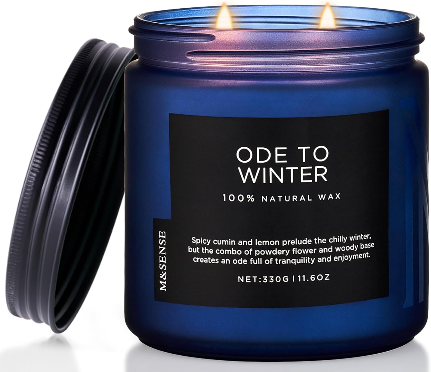 M&SENSE Ode to Winter - Lavender Sandalwood Scent 11.6oz Natural Soy Wax Non Toxic Candle, Up to 70 Hours Burn Time Winter Scents, 2 Cotton Wick Jar Candle Home Scented Gift