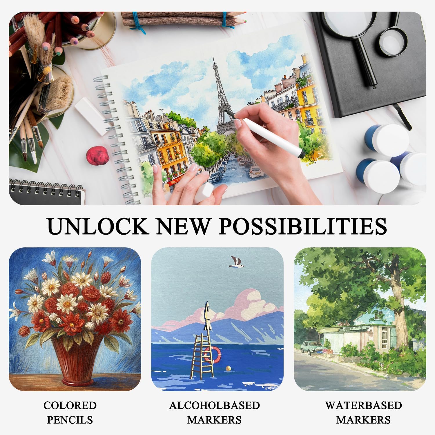 • Designed by Artists to Inspire Creativity: Belenova sketchbook for alcohol markers is crafted to inspire. The marker sketchbook bleedproof design keeps your artwork clean and vivid. This sketch pad for markers provides a smooth, vibrant surface. The art paper for markers enhances blending and layering. The 9x12 spiral bound sketchbook for markers offers both convenience and quality for every artist, kids art supplies.