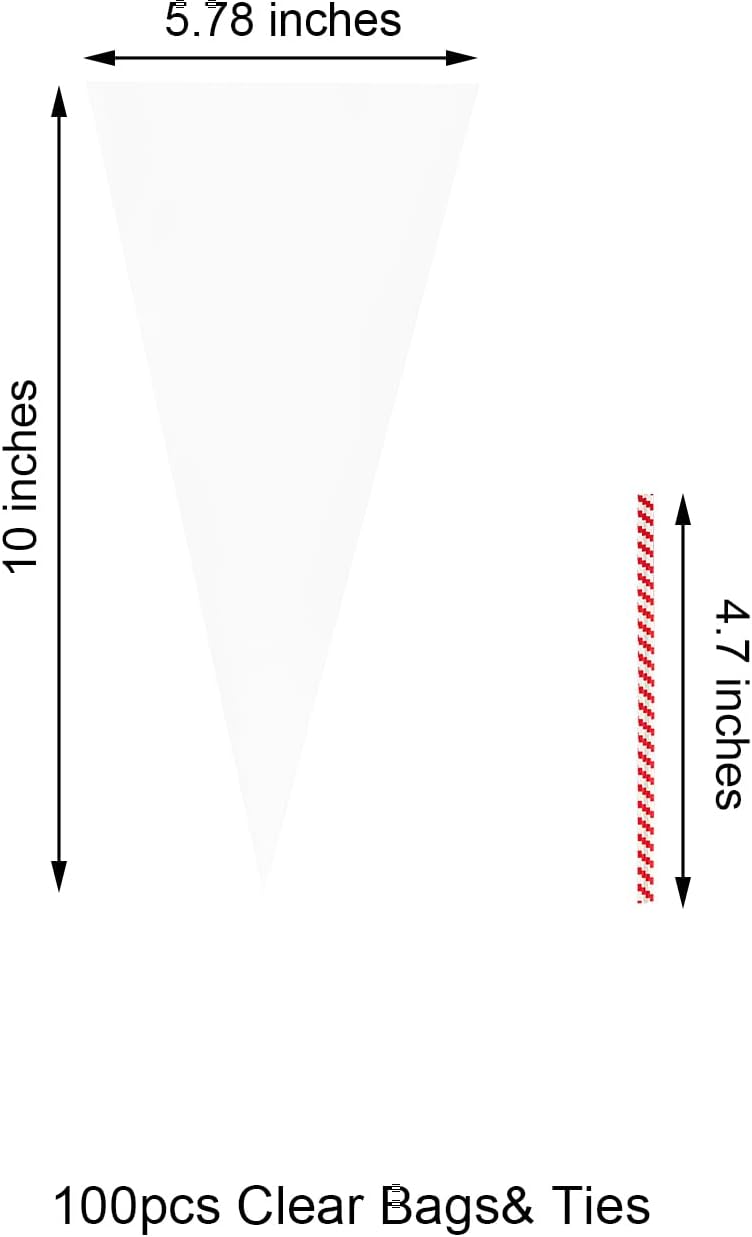 • 【Crystal Clear & Food-Grade Transparency】: Made from premium, extra-thick, food-grade OPP material, our cone bags offer a crystal-clear appearance that beautifully showcases candies, popcorn, handmade gifts, and more. The crisp material enhances the look of your packaging, making it ideal for parties, weddings, and holiday gift wrapping, ensuring your treats stand out.