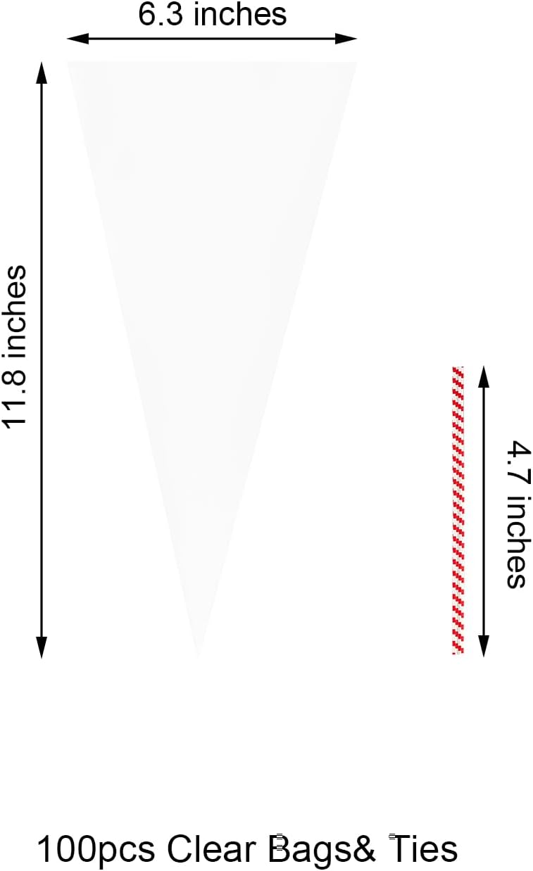 • 【Crystal Clear & Food-Grade Transparency】: Made from premium, extra-thick, food-grade OPP material, our cone bags offer a crystal-clear appearance that beautifully showcases candies, popcorn, handmade gifts, and more. The crisp material enhances the look of your packaging, making it ideal for parties, weddings, and holiday gift wrapping, ensuring your treats stand out.