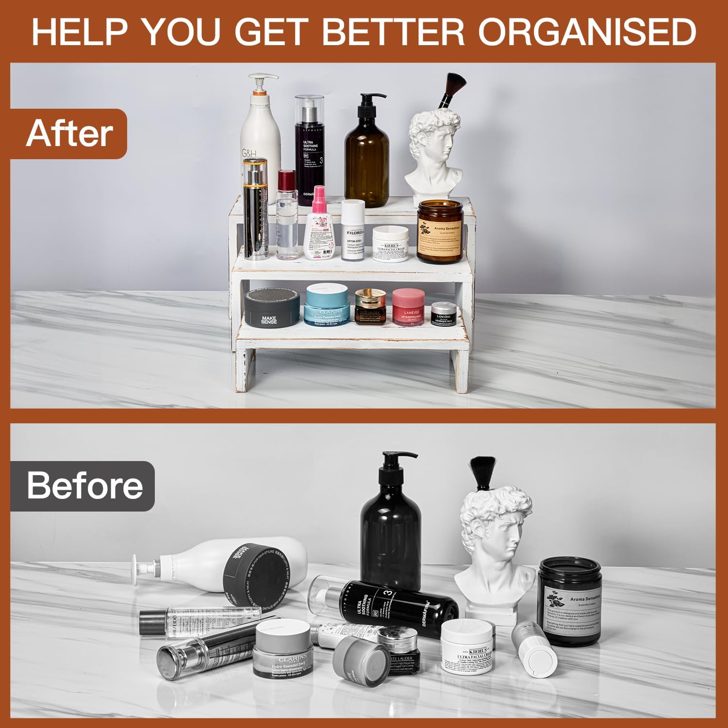 Set of 3 Wooden Rustic Cupcake Stand for 24 Cupcakes, Stepped Wood Display Stand for Weddings, Tiered Party Buffet Table Display Nesting Riser for Food , Dessert, Cookie, Craft Show, White