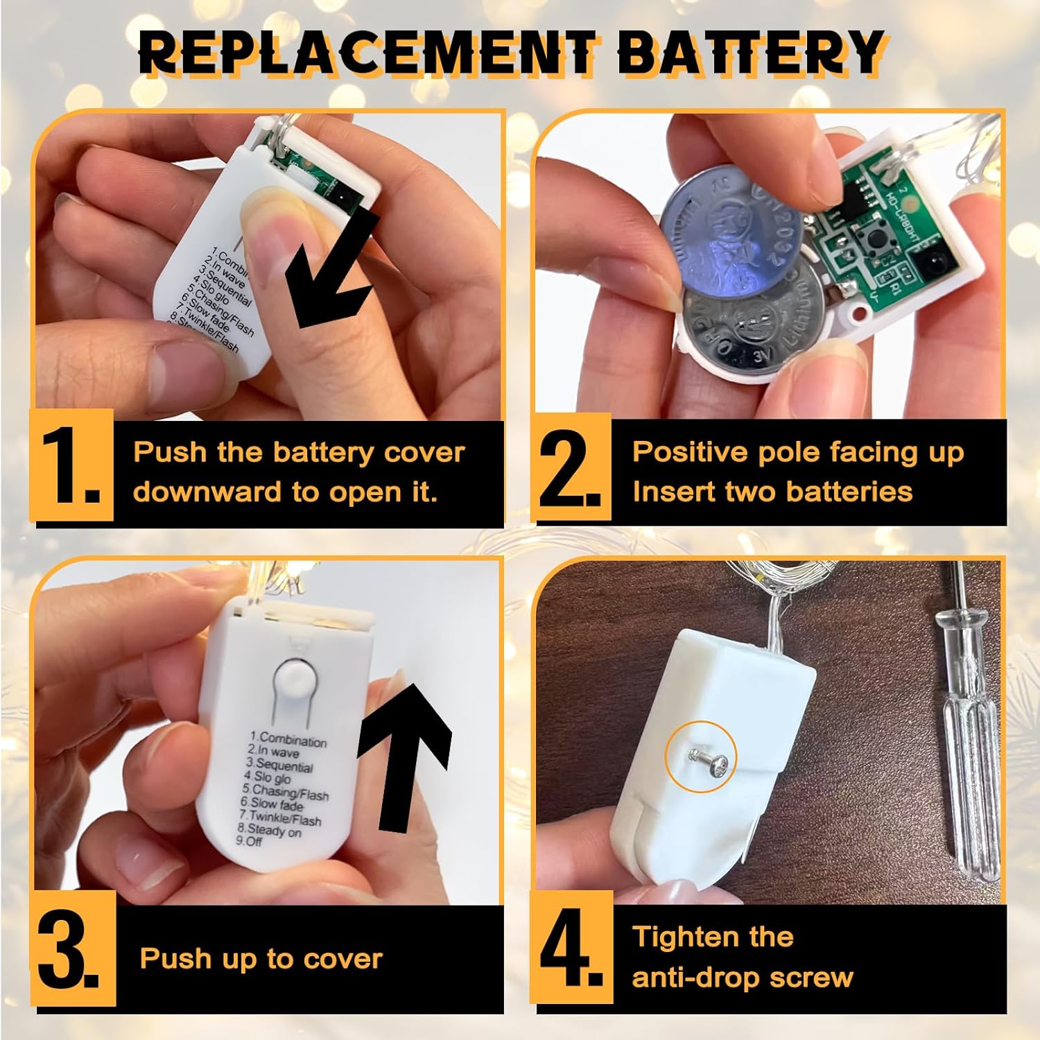 • 【Battery Powered & Remote Control】: Say goodbye to manual switches! Effortlessly control your lights with the included remote, adjusting settings from a distance for maximum convenience. Each light set is powered by 2 CR2032 batteries (included and replaceable).
