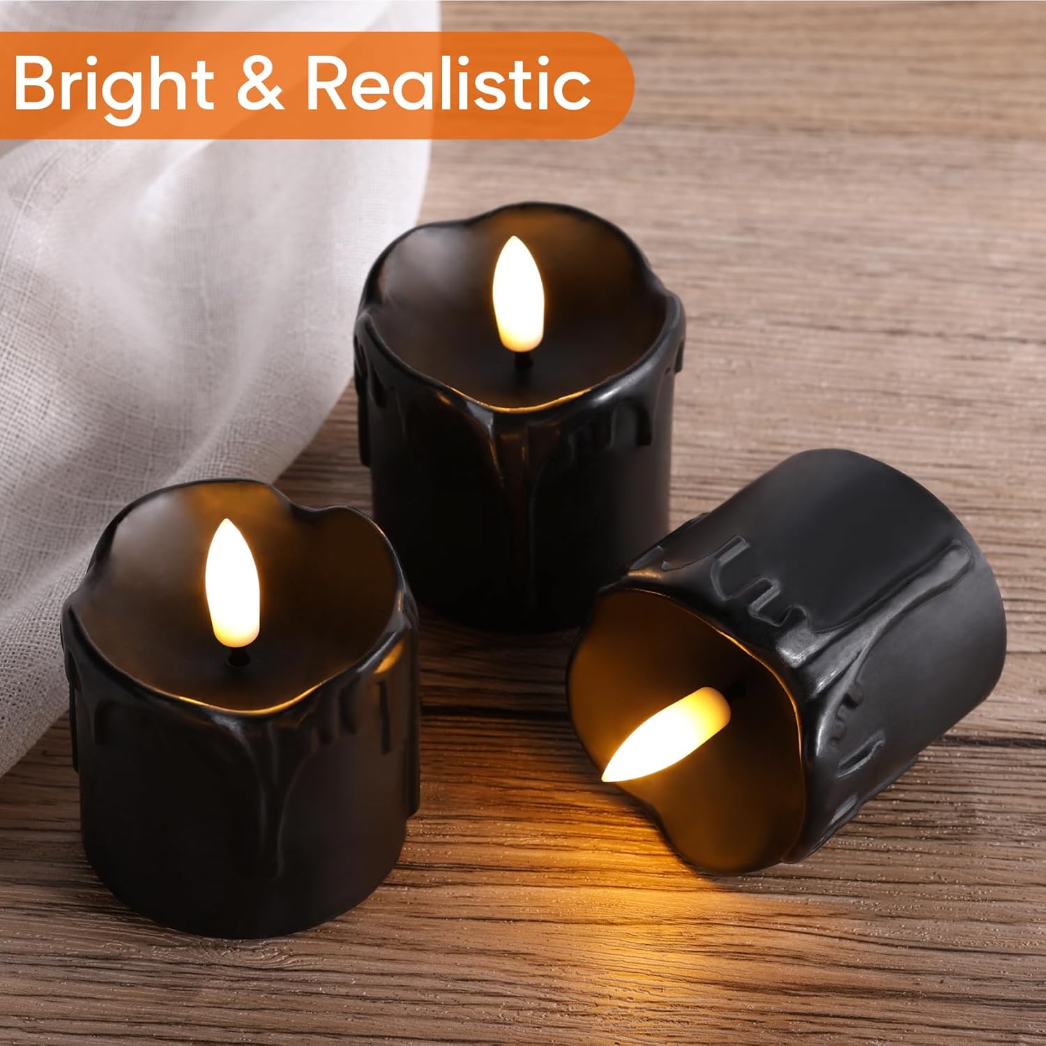 Eywamage Black Dripping Wax Flameless Candles with Timer Batteries, Realistic Flickering LED Votive Candles Set of 6