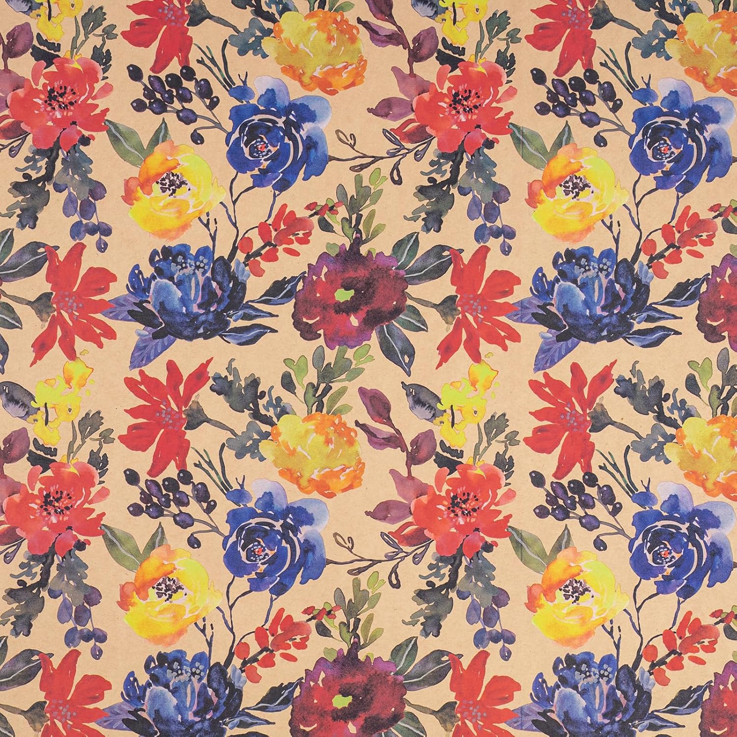 RUSPEPA Watercolor Floral Gift Wrapping Paper - Mini Roll - Kraft Paper Roll for Girls, Women, Bridal Shower and Birthday - 17 Inches x 16. 4 Feet
