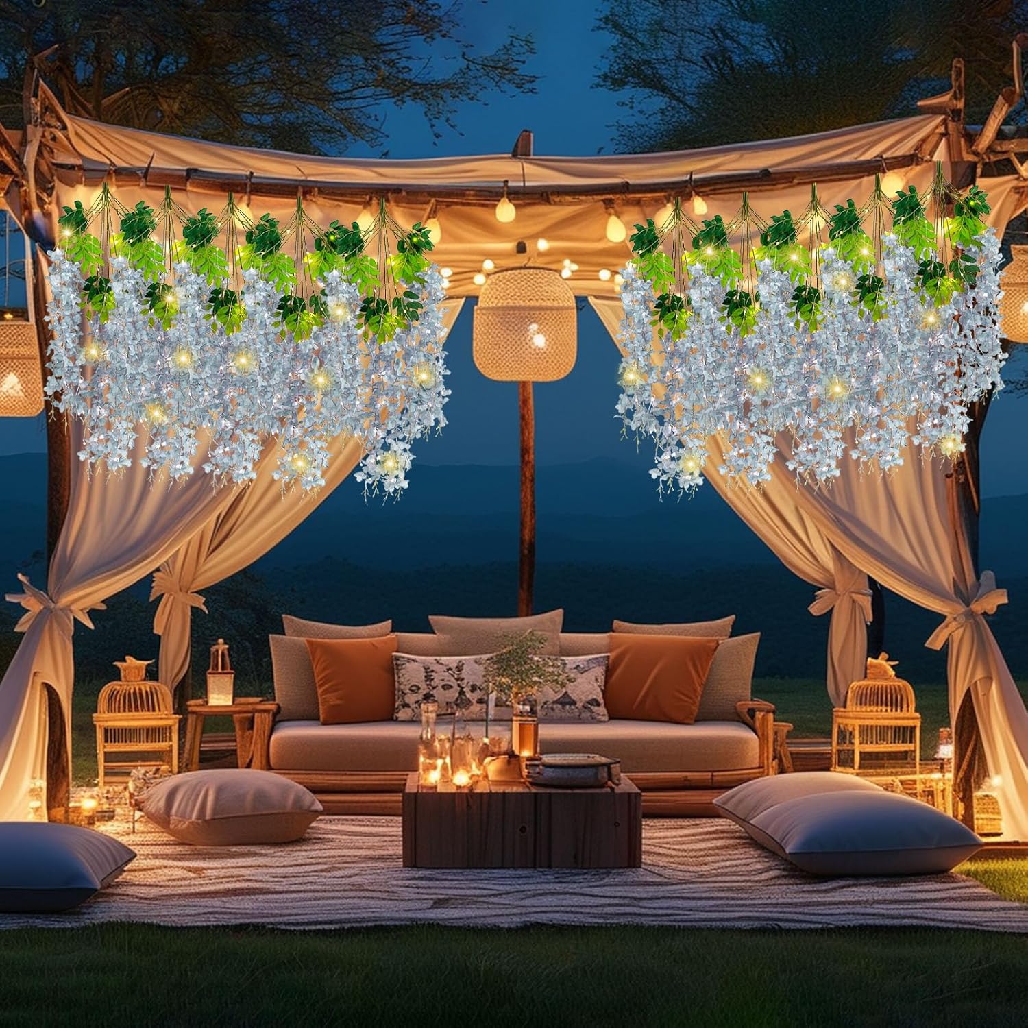 • 【Wisteria Flower Vines with Lights】Whether you decorate beautiful grey wisteria floral garland with lights indoors or outdoors, you can achieve a magical decorative effect. Decorating the interior makes your home look full of life while decorating the exterior makes the environment more springy.With warm light string to make your decoration warmer.