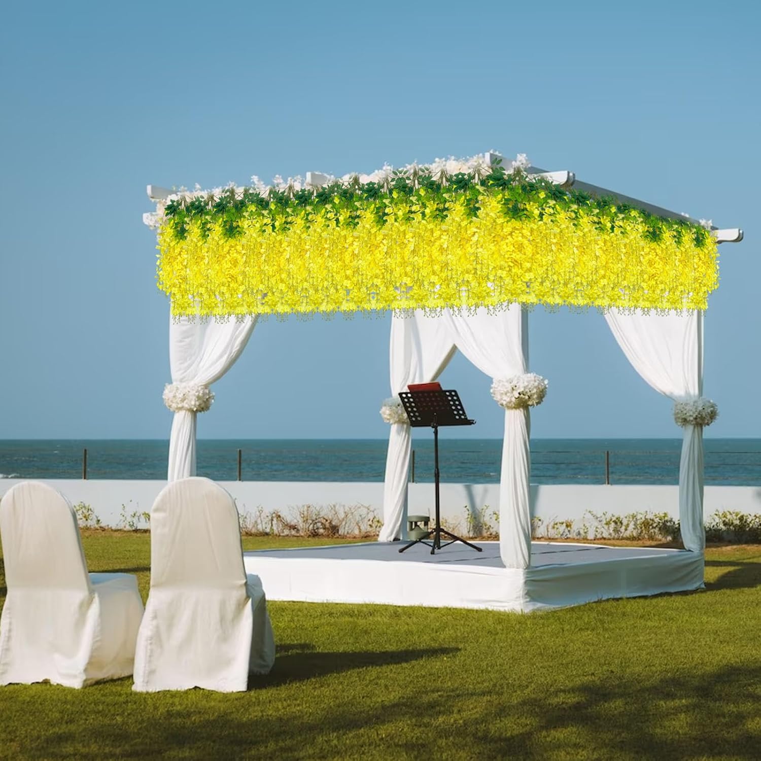 • 【Easy to Install】The yellow hanging garland flowers stem are made of durable metal wire and covered with plastic. You can bend the wisteria flower in any shape to satisfy your decoration imagination without damaging it. And the wisteria flower is very easy to install and remove, you can reduce a lot of troubles on installation.