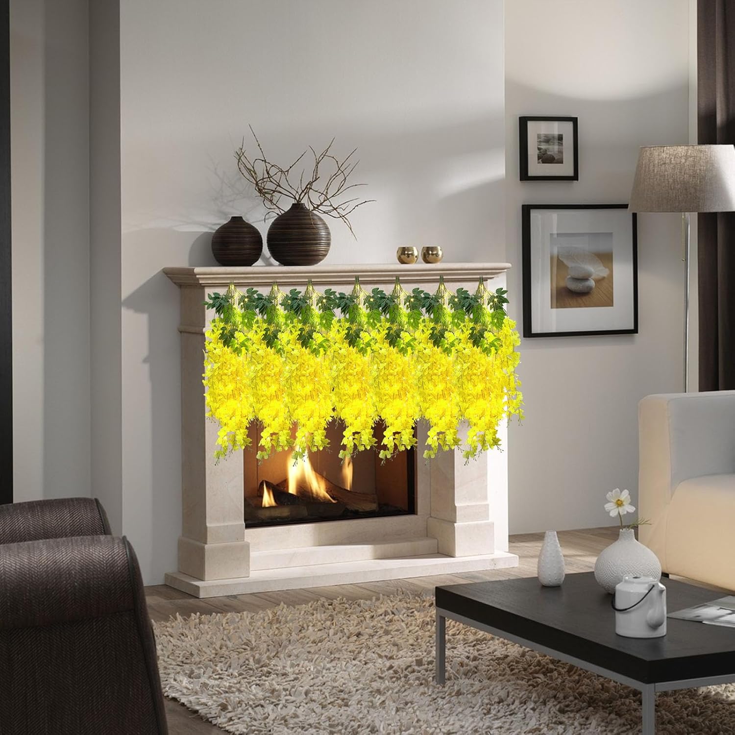 • 【Package Included】12 pieces of silk yellow wisteria hanging flowers, each length 41.27 inches. Every artificial wisteria garland has 3 branches and 6 leaves, the wisteria flower petal length is 21.62 inches. It also comes with a warm light string that requires 2 AA batteries (Note: There may be some color differences in different lights, product not include batteries)