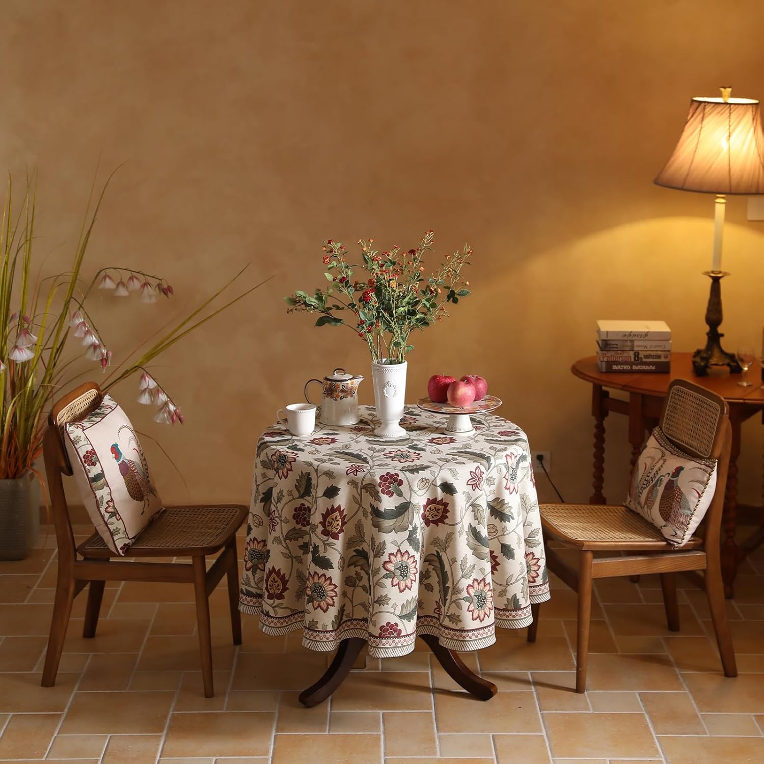 ISAENNE Designer Provence Floral Round Tablecloth,Linen Colorful Washable Indoor Table Cloth,Durable Home Decor Tablecloths for Dining Thanksgiving Kitchen Christmas,Diameter 67"-Ratina