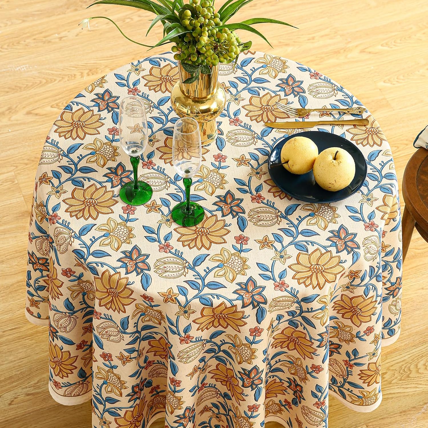 ISAENNE Designer Bohemian Floral Small Round Tablecloth,Linen Colorful Table Cloth,Wrinkle Resistant Decor Tablecloths for Dining Thanksgiving Kitchen Party Christmas,Diameter 55"-Estevan B