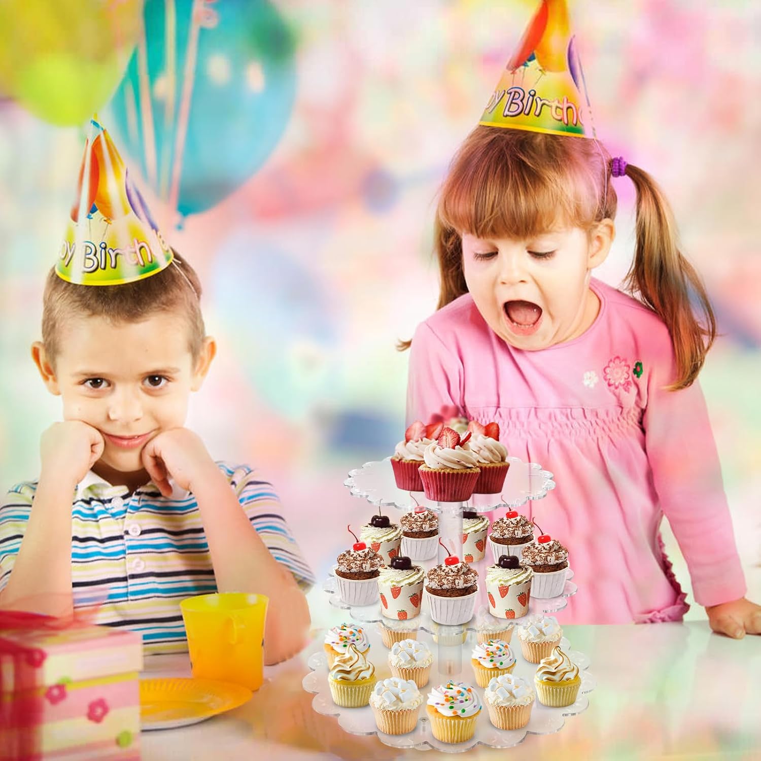 • 【3 Tier Cupcake Stand with Base】The round cupcake tower stand can be used with just 2 or 3 tiers, can holds about 22-25 cupcakes (2.5inch diameter of cupcake size). Transparent cake display stand can also show your macarons, desserts, cookies, chocolates, donuts, candy, fruits to your friends or families