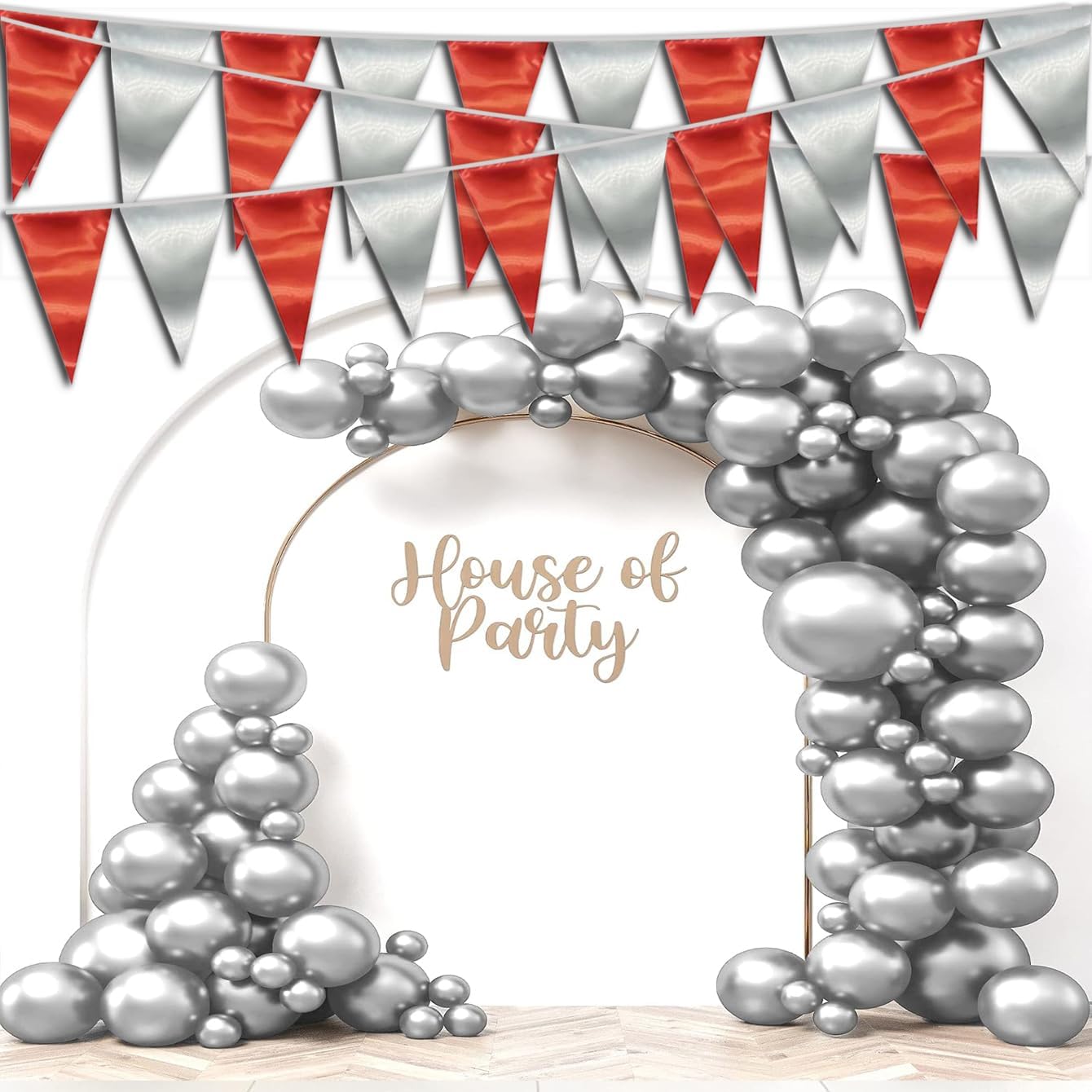 • 【Red Silver Pennant Bunting Set】: The total length of the Red Silver Triangle banner is 65.6 feet, divided into 2 strips, each 32.8 feet long. 40Flag, Each Pennant Banner 40Flag Size: 7.87''/20cm width x 11.8''/30cm height for birthday decorations many occasions, and so on