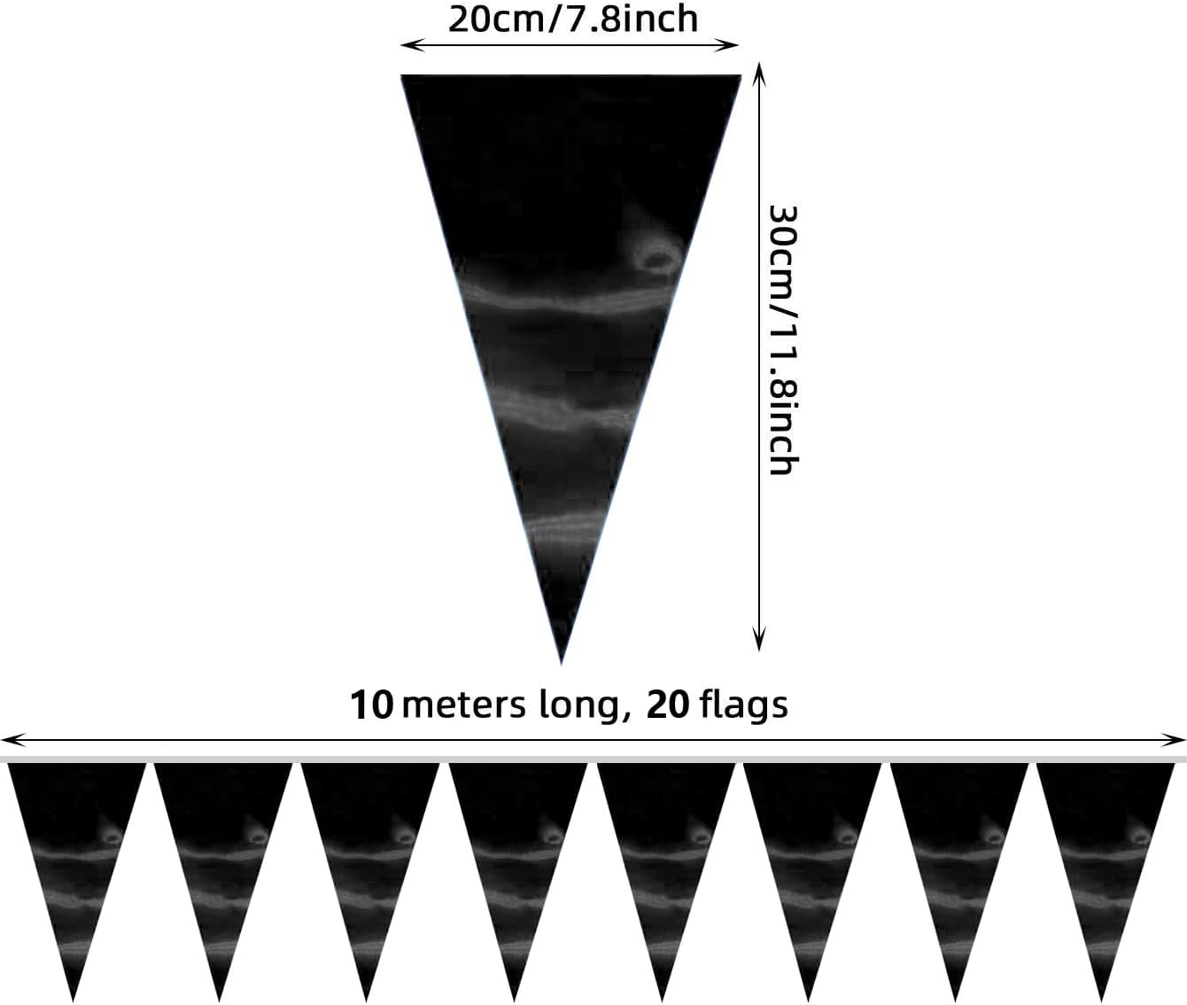 • 【Black Pennant Bunting Set】: The total length of the Black Triangle banner is 65.6 feet, divided into 2 strips, each 32.8 feet long. 40Flag, Each Pennant Banner 40Flag Size: 7.87''/20cm width x 11.8''/30cm height for birthday decorations many occasions, and so on