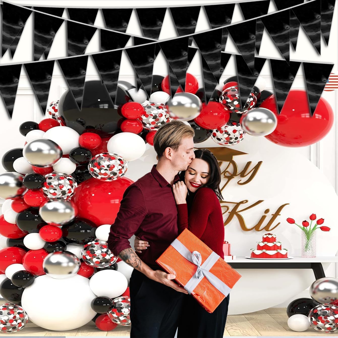 20M/65FT Black Triangle Pennant Banner Flag Metallic Fabric Bunting Garland for Christmas Graduation Birthday Wedding Engagement Bachelorette Holiday Halloween Celebration Hen Party Supplies