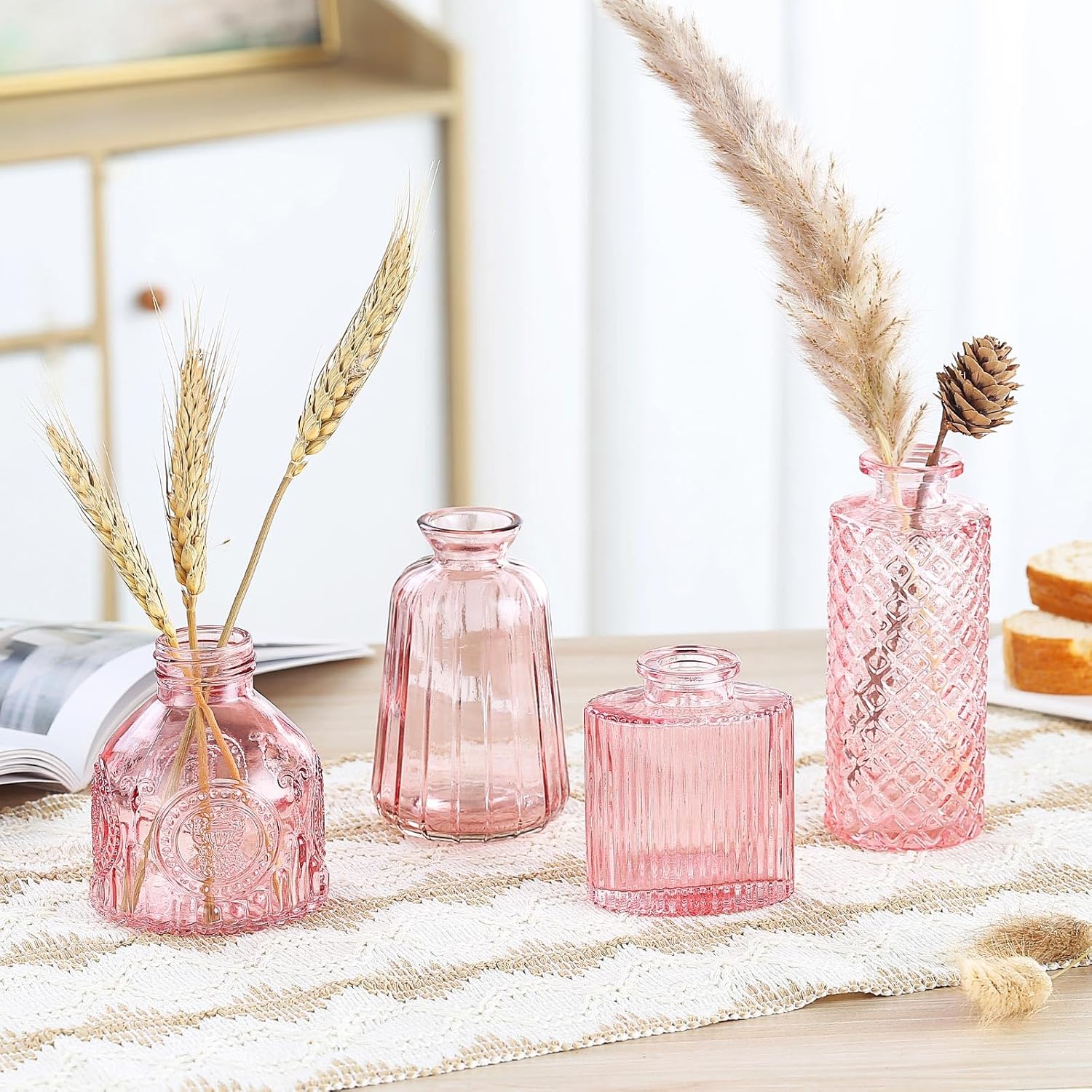 • Versatile Decor Accents: Ideal for kitchen, living room, office, dining area, or as captivating table centerpieces, these pink bud vases for floral decor transcend their role as mere flower holders. Embrace their multifunctionality as stunning glass vases for centerpieces or reed diffusion vessels. Perfect gifts for various occasions like weddings,Mother's day,Christmas, Graduation, housewarmings, and more, ensuring delight for your friends and loved ones.