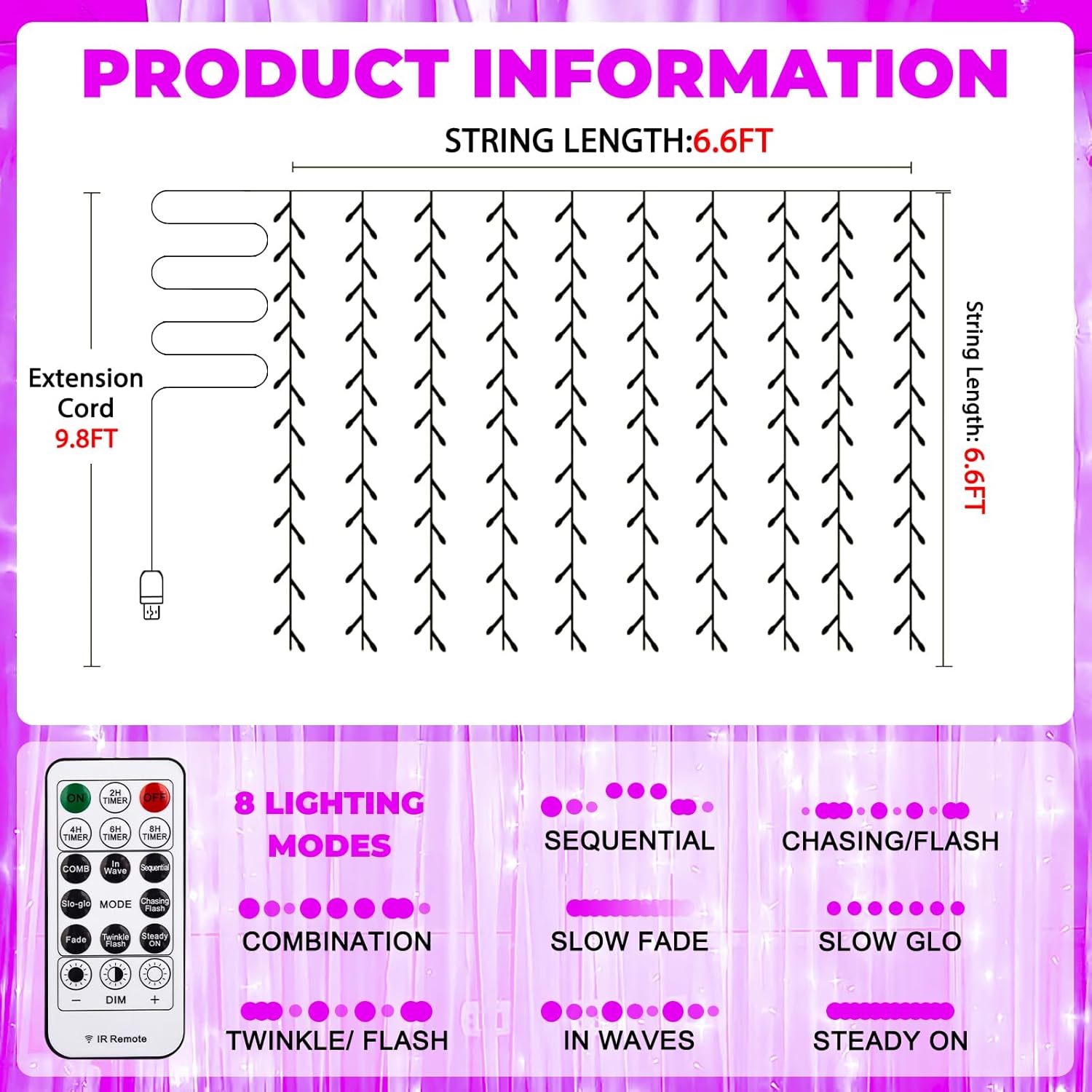 • 8 Lighting Modes: Each mode creates a unique romantic ambiance, including options like combination, waves, sequential, slow glow, chasing/flash, slow fade, twinkle/flash, and steady on; Perfect for various occasions and settings and Transform your nights from dark and plain to warm and inviting
