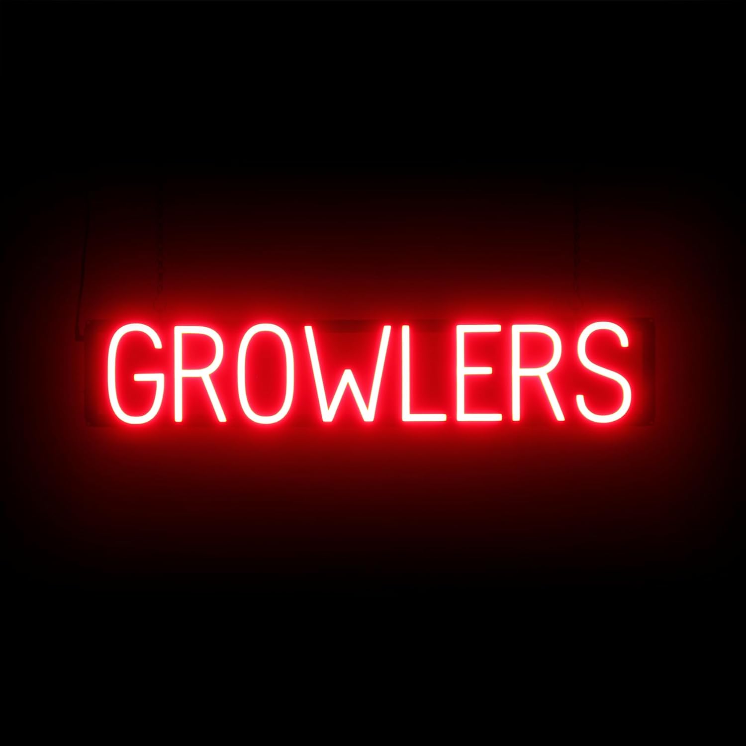 SpellBrite GROWLERS Sign | Beer-Related Sign with Neon Look, Red LED Light Source | 33.0" x 6.3"