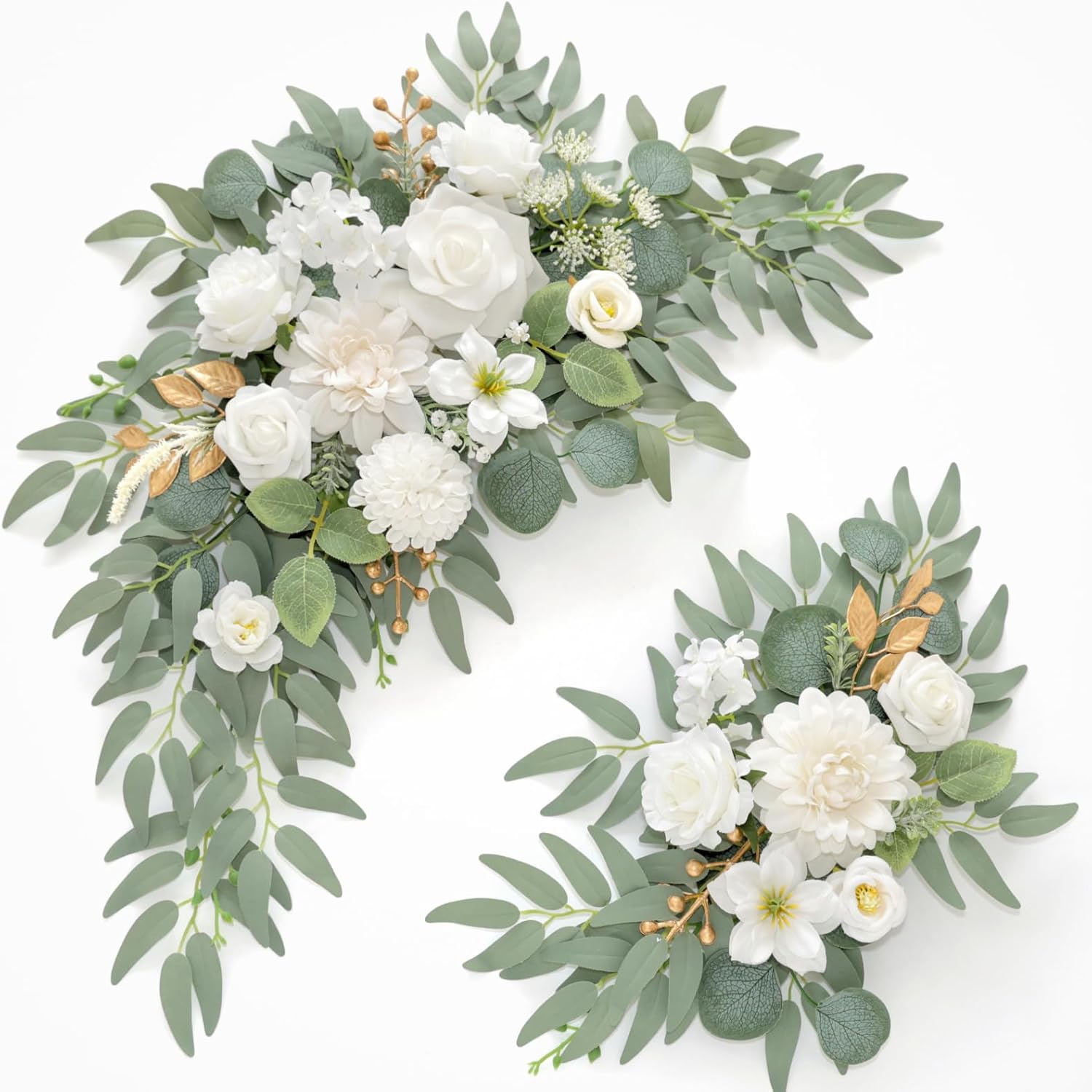 Faux Flower Swag Set of 2 for Wedding Welcome Signs Floral Swag Wedding Reception Ceremony Signs Decor (A-White)