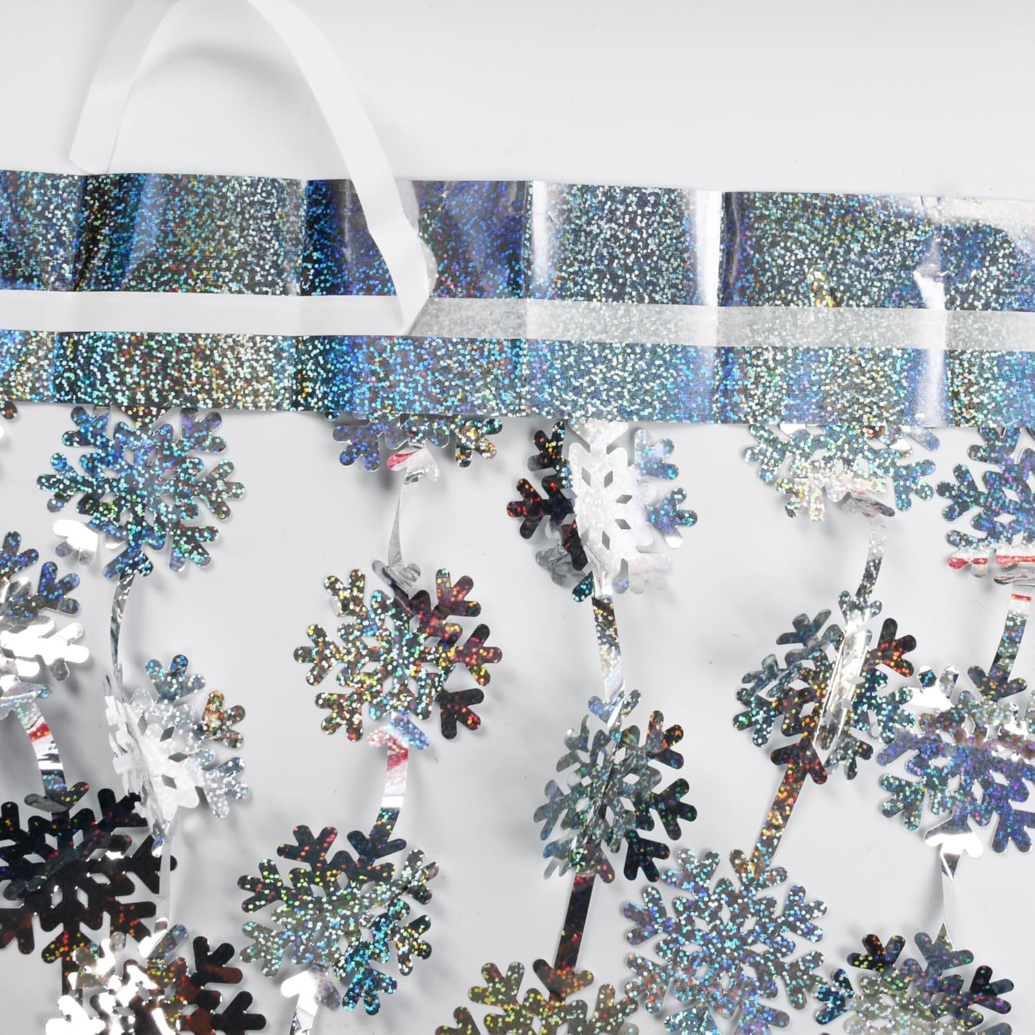 BRAVESHINE Silver Party Snowflake Backdrop - 2 Pack Hanging Foil Fringe Snow Flakes Party Streamers Curtain for Christmas Winter-Themed Frozen Birthday Baby Shower Holiday New Year Party Decorations