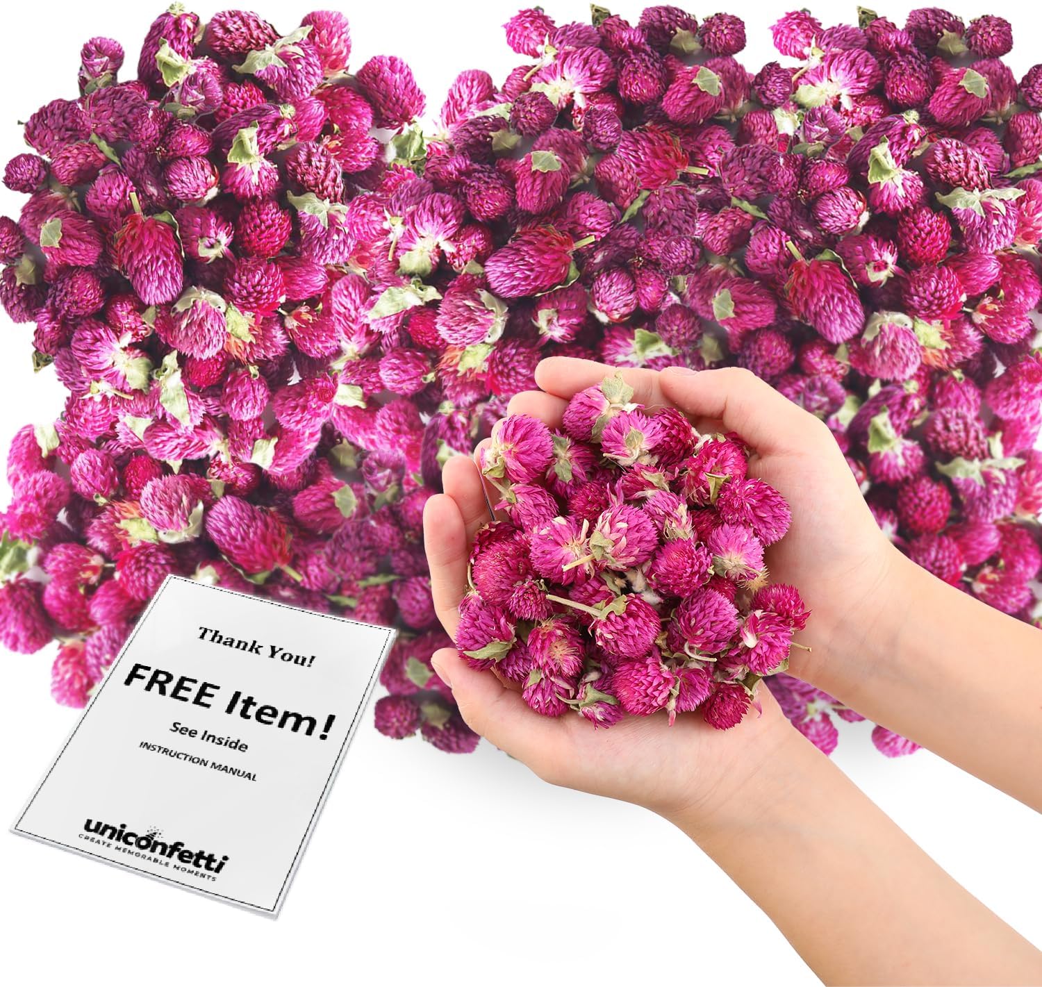 • 🎉 5-10 HANDFULS: 1/2 lbs or 8oz of oven-dried real Thousand Days Petals. The flowers were organically grown, so no chemicals and pesticides in the petals.