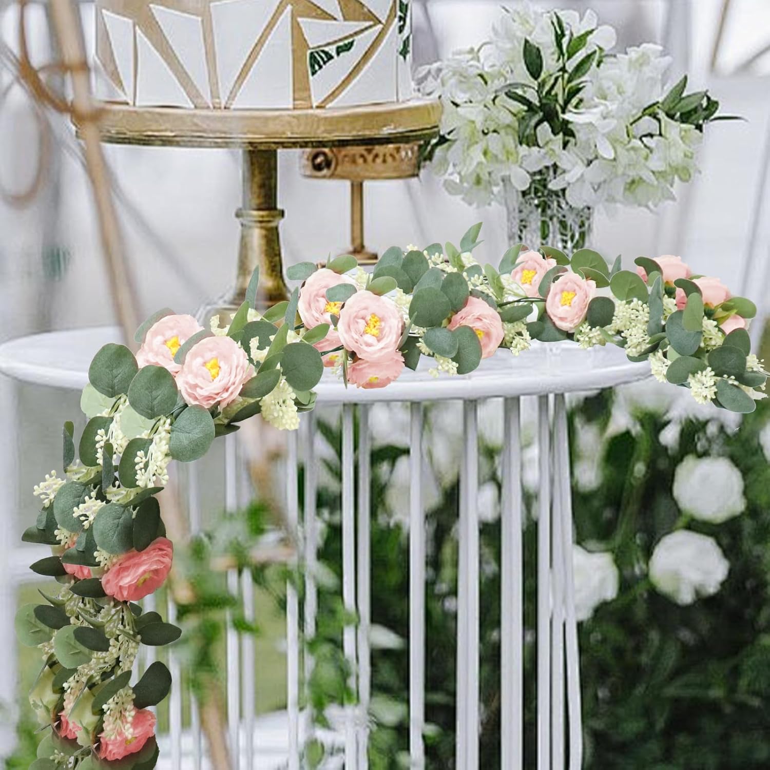 MAKHOT 2 Pcs Pink 6.6Ft Artificial Eucalyptus Flower Garland with Fake Rose Flower Vine Seeded Eucalyptus Leaves Greenery Garland for Wedding Table Backdrop Party Centerpiece Room Decor (Pink)