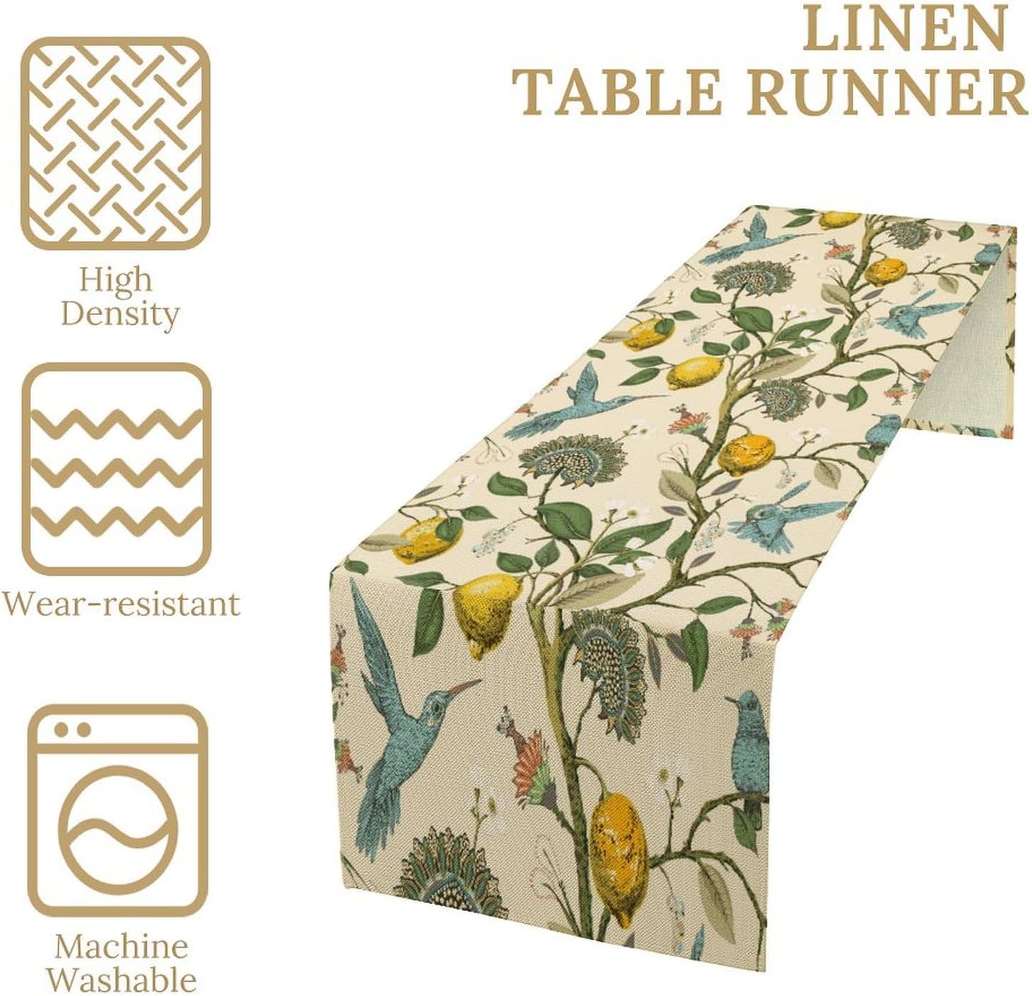 Table Runner with Flowers and Birds, Spring Plant Flowers Table Decoration Linen Table Runner Family Party Party Decorations 13x36 Inches