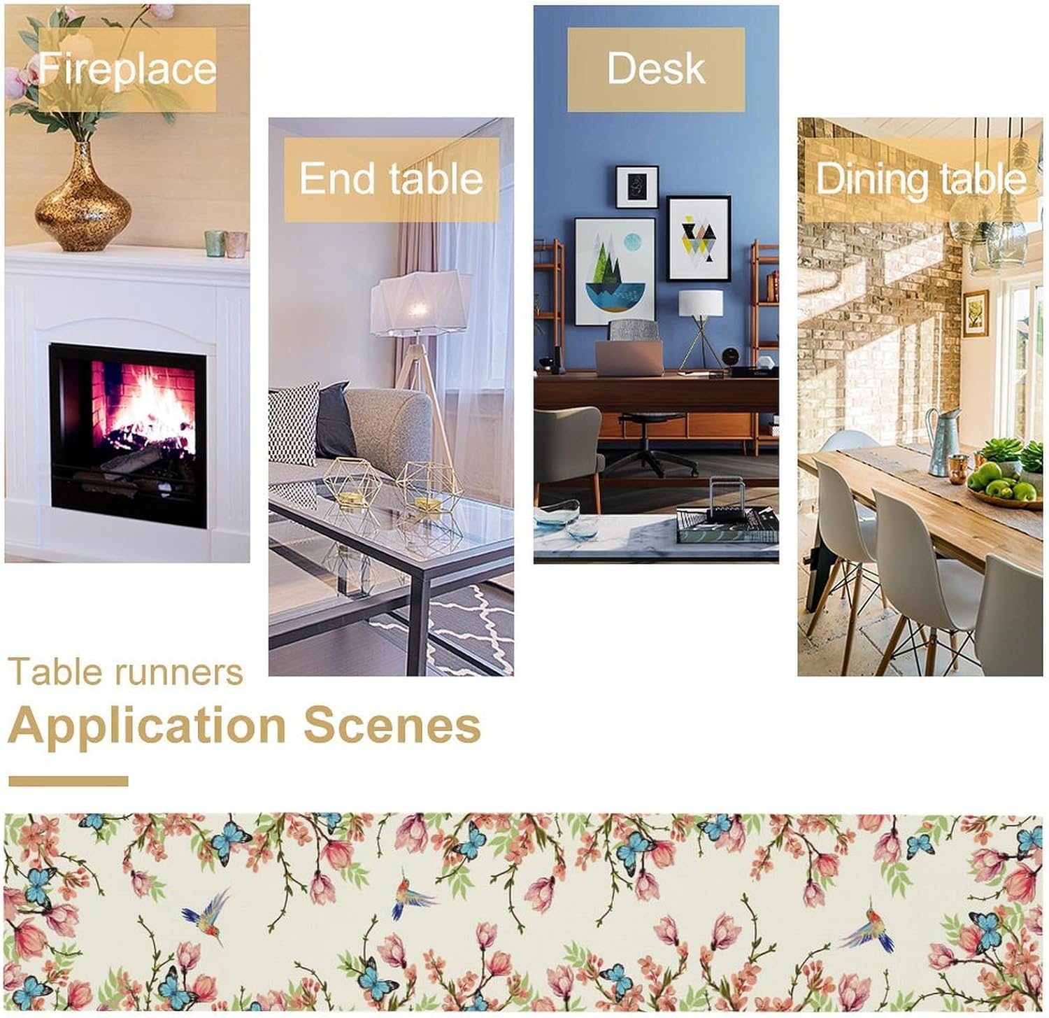 Floral Butterfly Table Runner Seasonal Spring Flower Bird Table Decoration Table Runner for Home Party Decoration 13x120 Inch