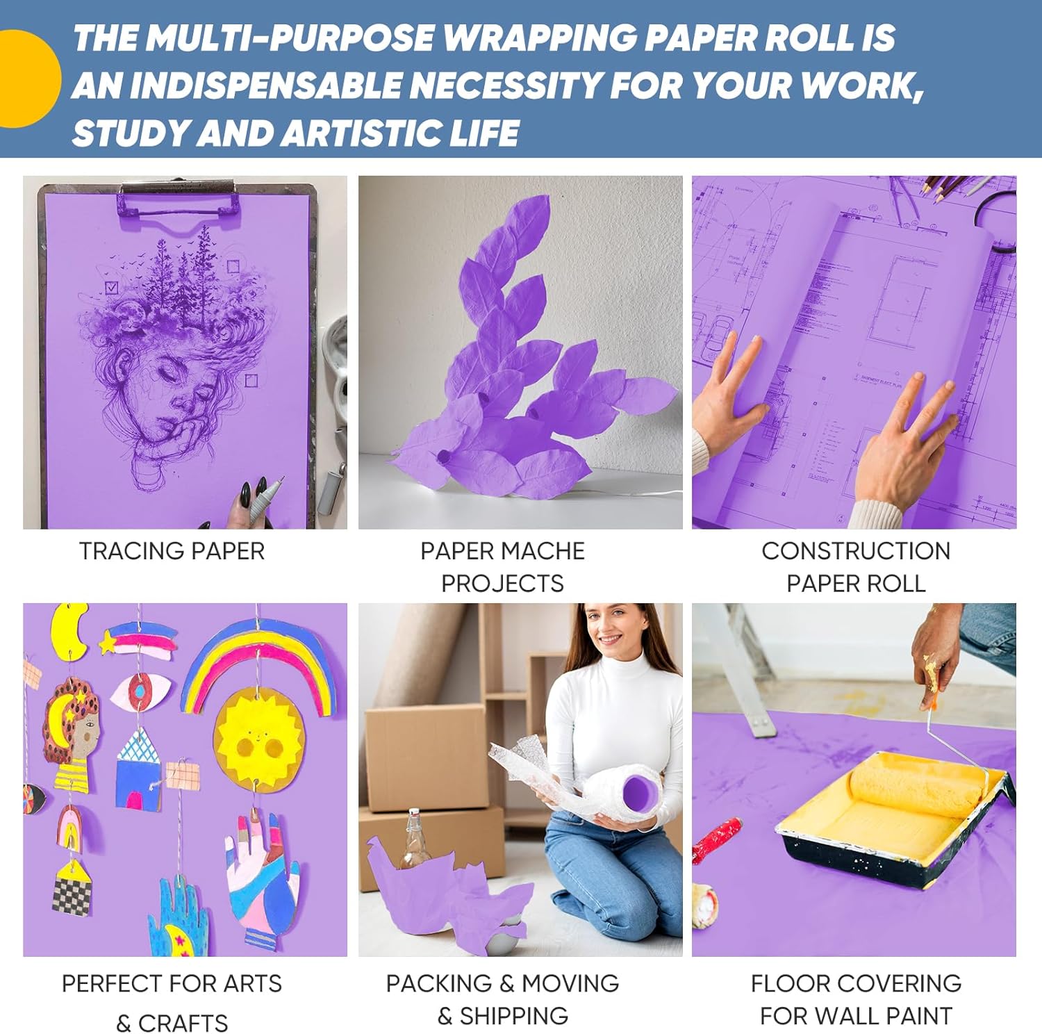 • 【Endless Purple Packing paper】With 75 feet of packing paper in a roll, you have enough paper to complete multiple projects without having to constantly restock. It saves you time and money compared to buying smaller rolls or sheets of paper. This blank canvas is a must-have paper roll item for packing, crating, shipping, moving, mailing, postal, parcel, sublimation printing, packaging fillers, table runner and floor coverings