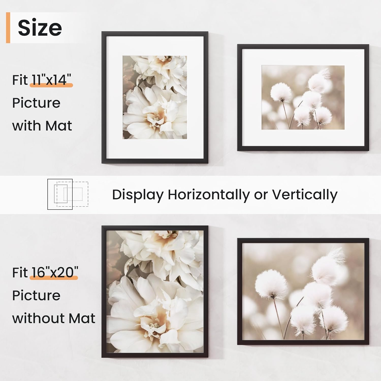 16x20 inch Picture Frame, 16x20 Photo Frames with 11x14 Removable Mat - High Definition Plexiglass - Vertical and Horizontal Display - Wall Hanging Frame - Black, 5 Pack