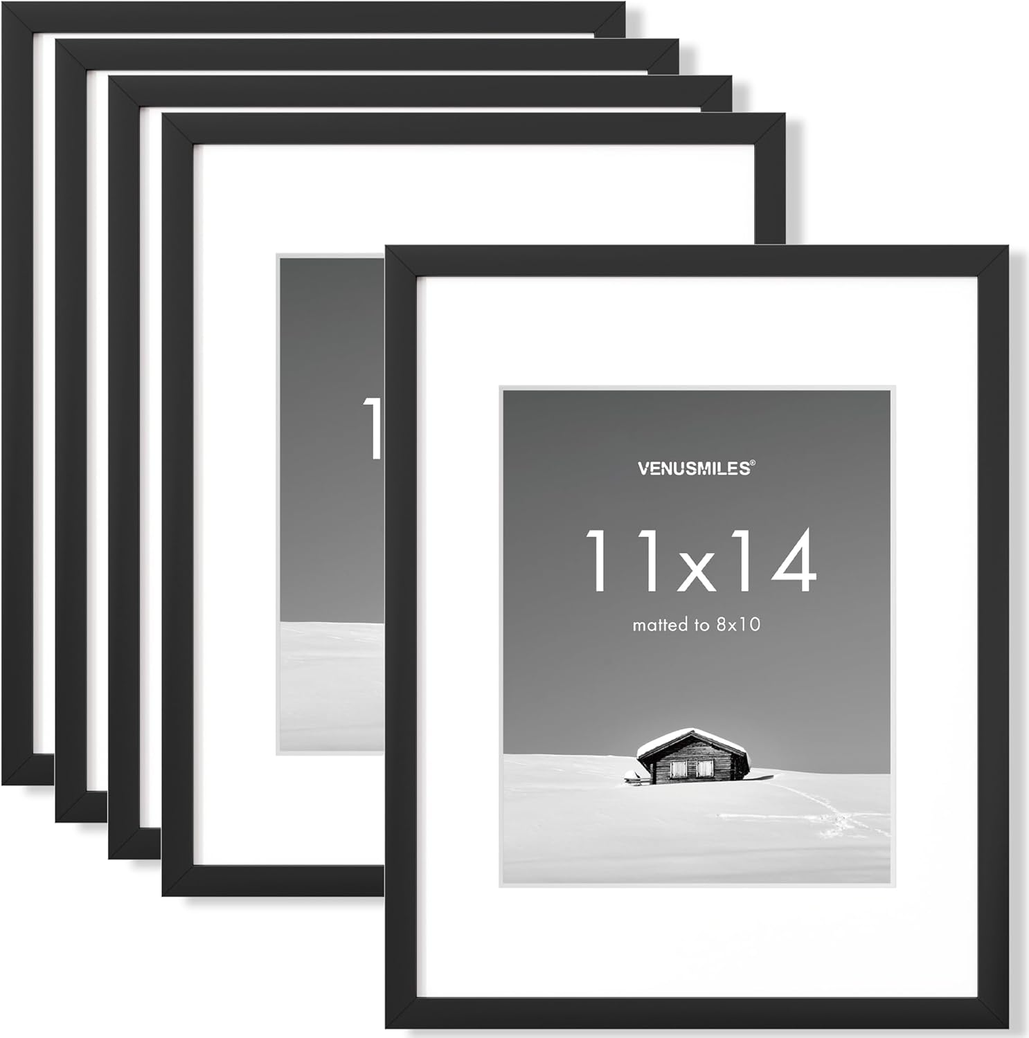 11x14 inch Picture Frame, 11x14 Photo Frames with 8x10 Removable Mat - High Definition Plexiglass - Vertical and Horizontal Display - Wall Hanging Frame - Black, 5 Pack